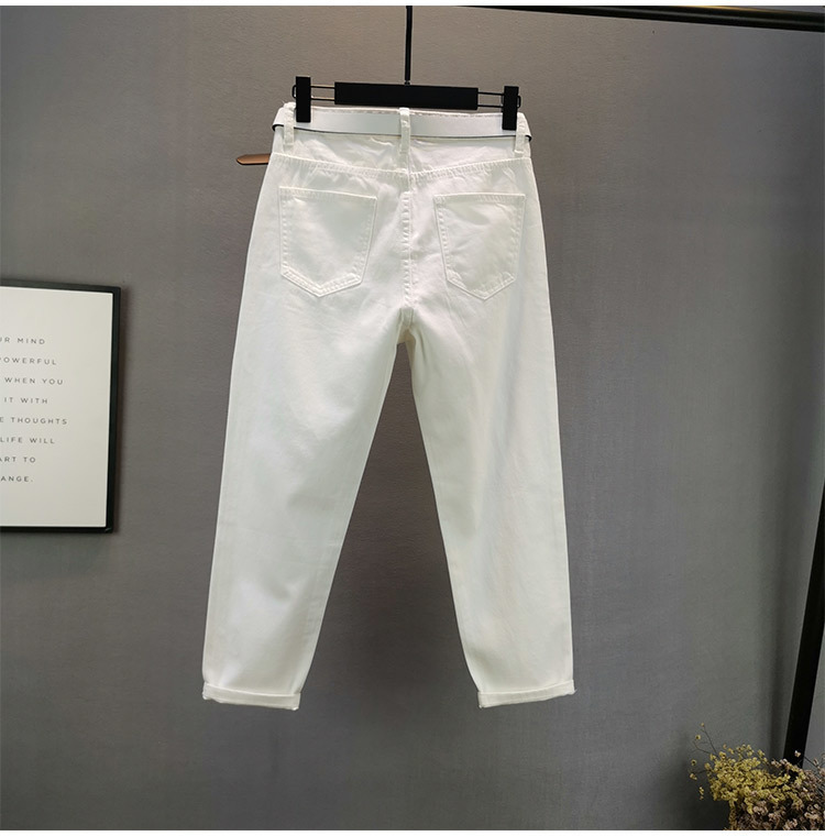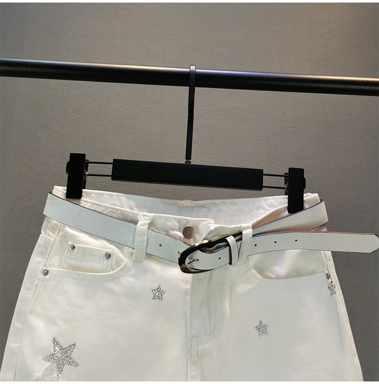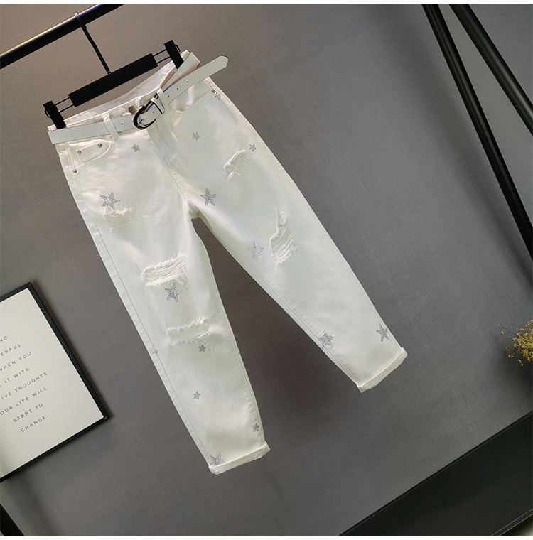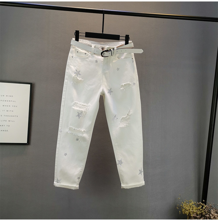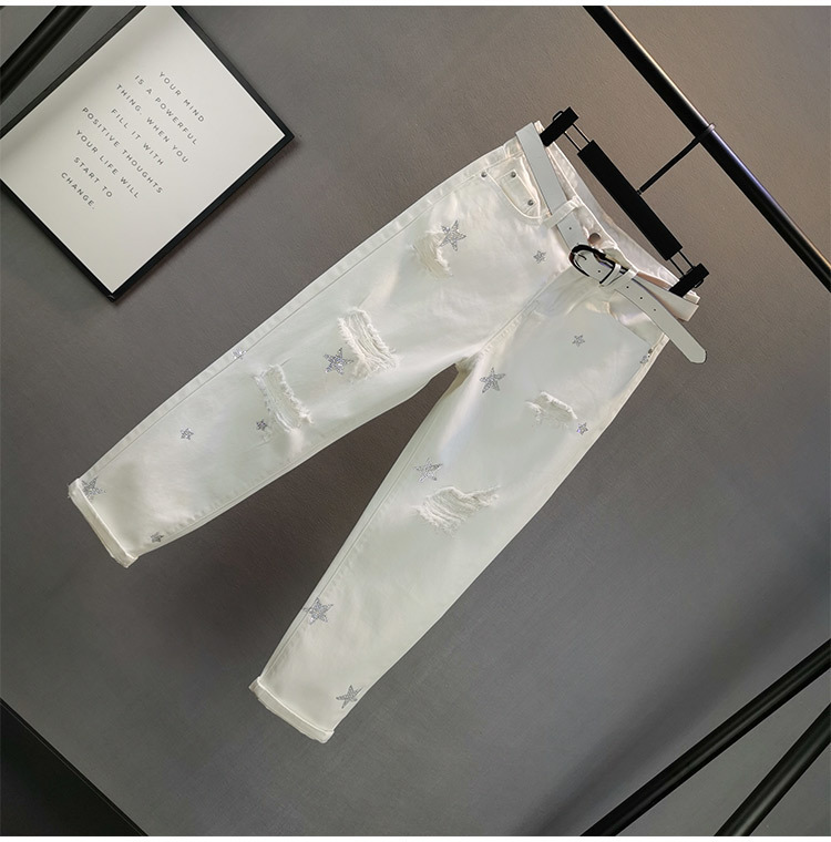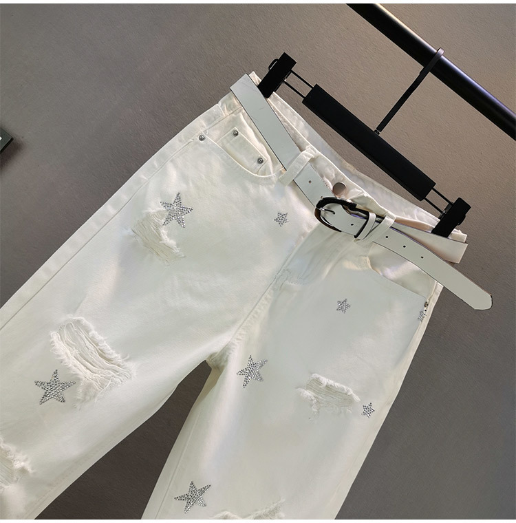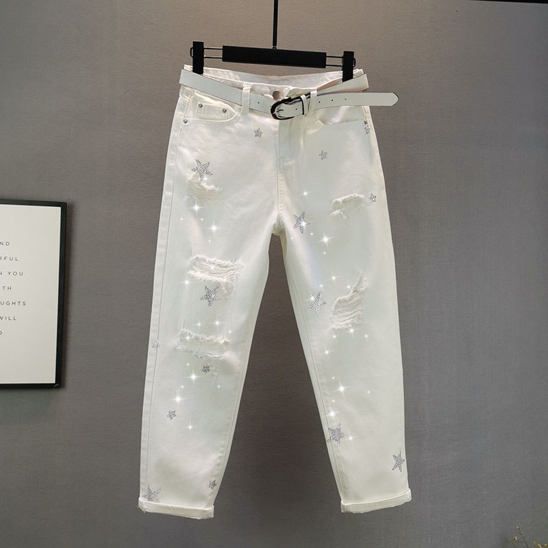 여성용 화이트 청바지 트렌디 2025 여름 신작 유럽 제품 루즈 슬리밍 스타 핫 다이아몬드 찢어진 담배 튜브 바지스토어 가기