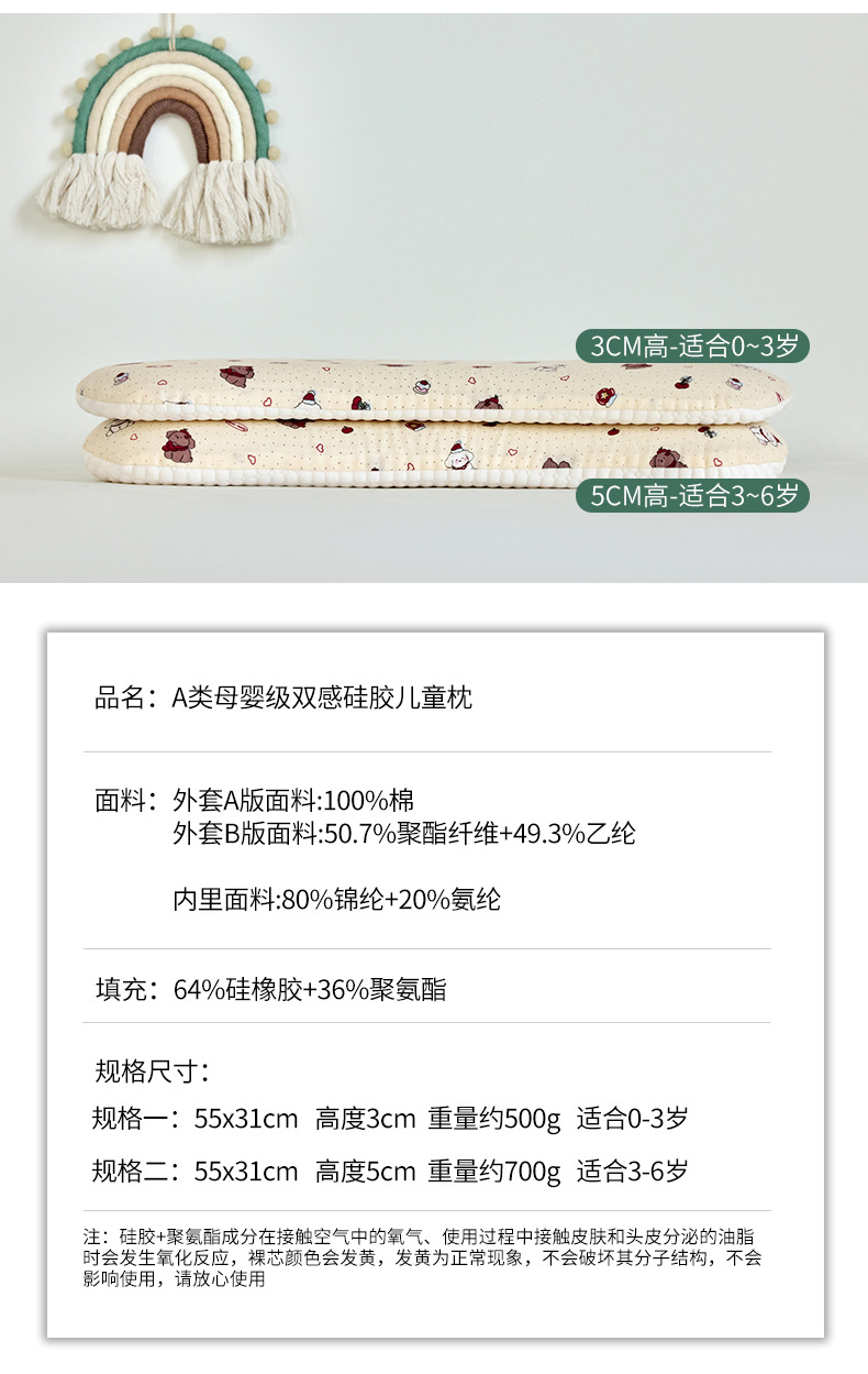 A급 산모 및 유아용 실리콘 어린이 베개 아기 아이스 콩 베개 쿠션 및 베개 커버 어린이 수면 전용 베개