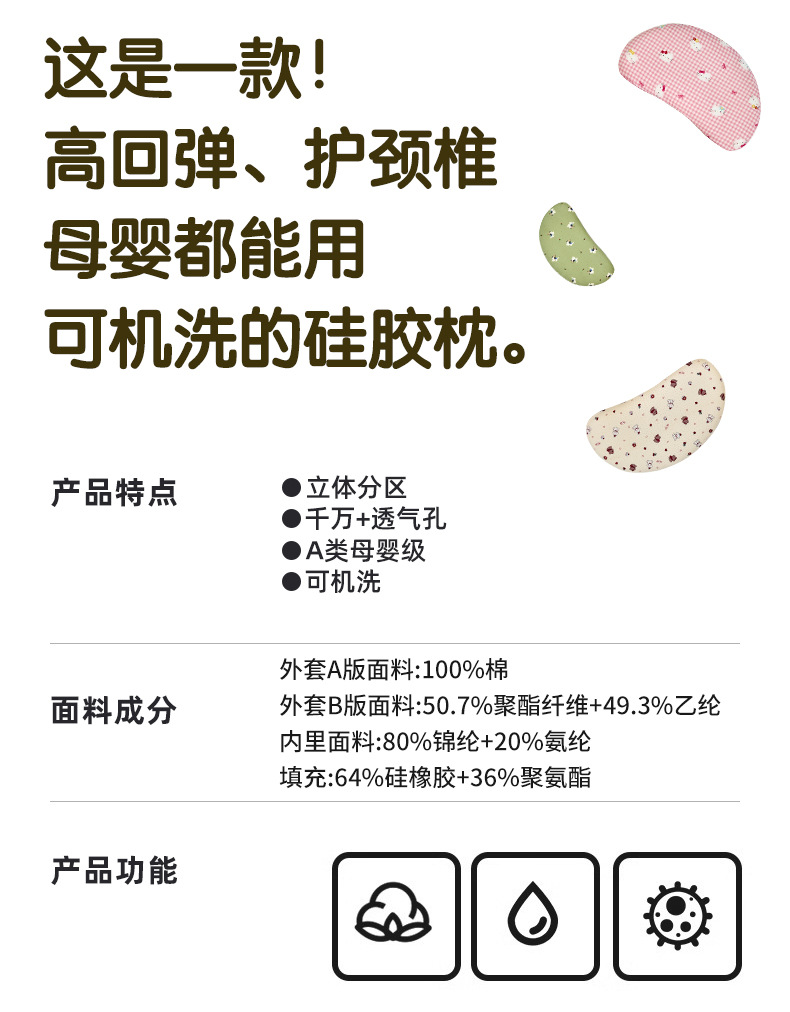 A급 산모 및 유아용 실리콘 어린이 베개 아기 아이스 콩 베개 쿠션 및 베개 커버 어린이 수면 전용 베개스토어 가기