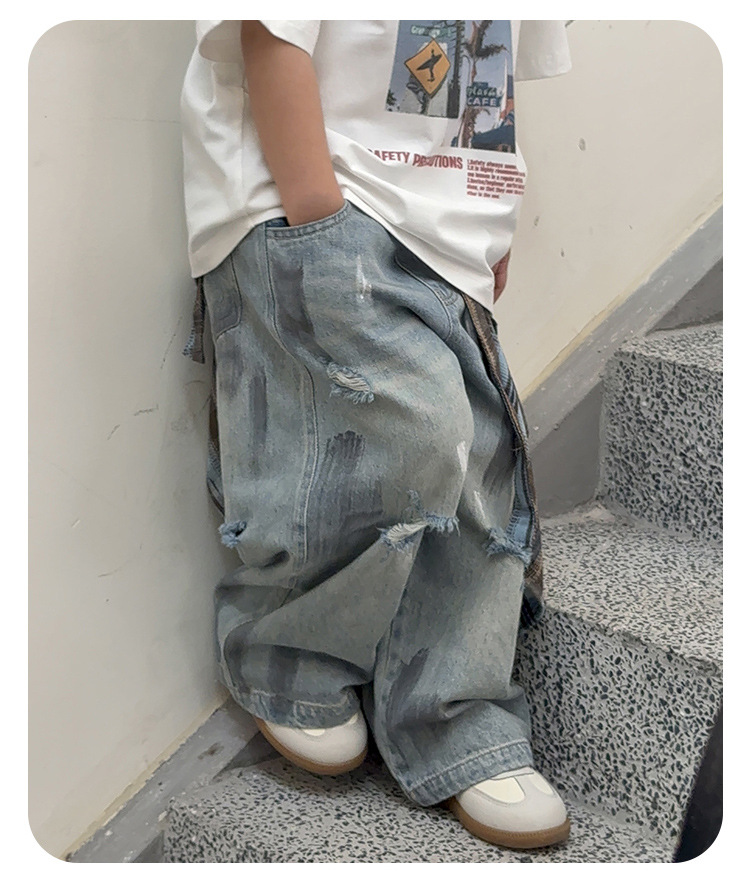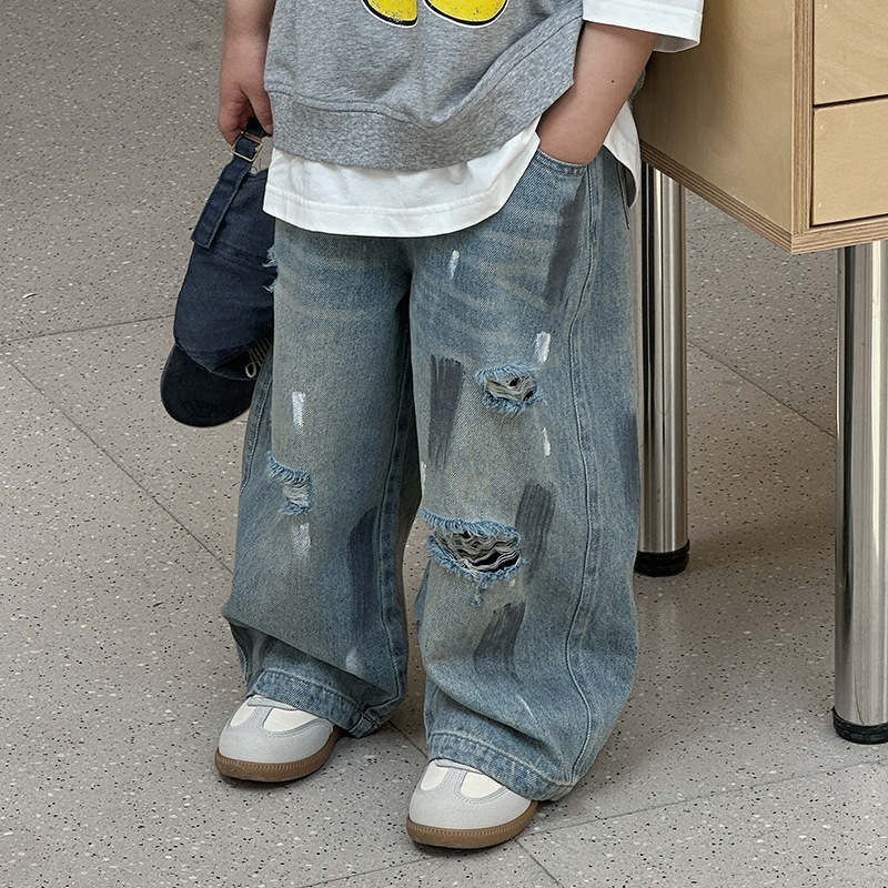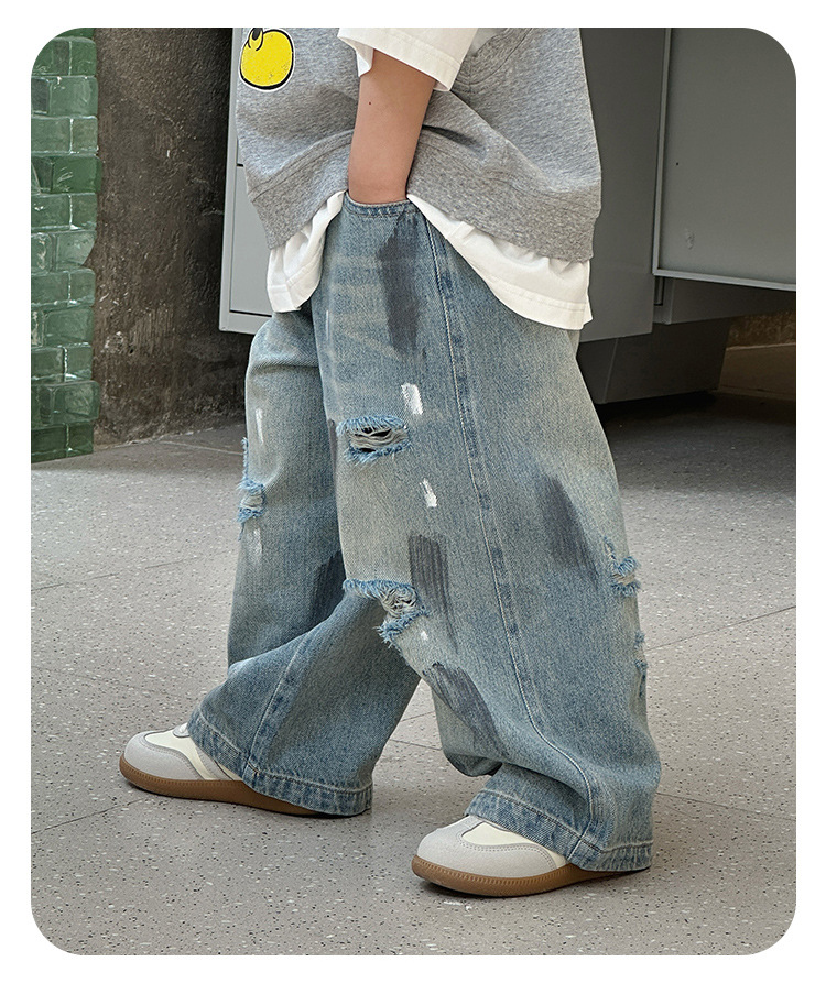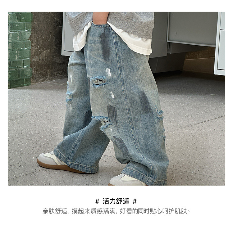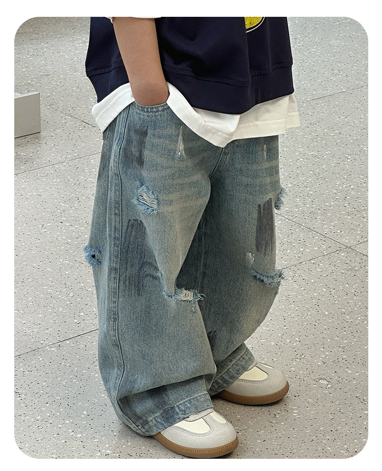 243082 아동용 봄, 가을 패션 트렌디 다용도 루즈 캐주얼 데님 바지