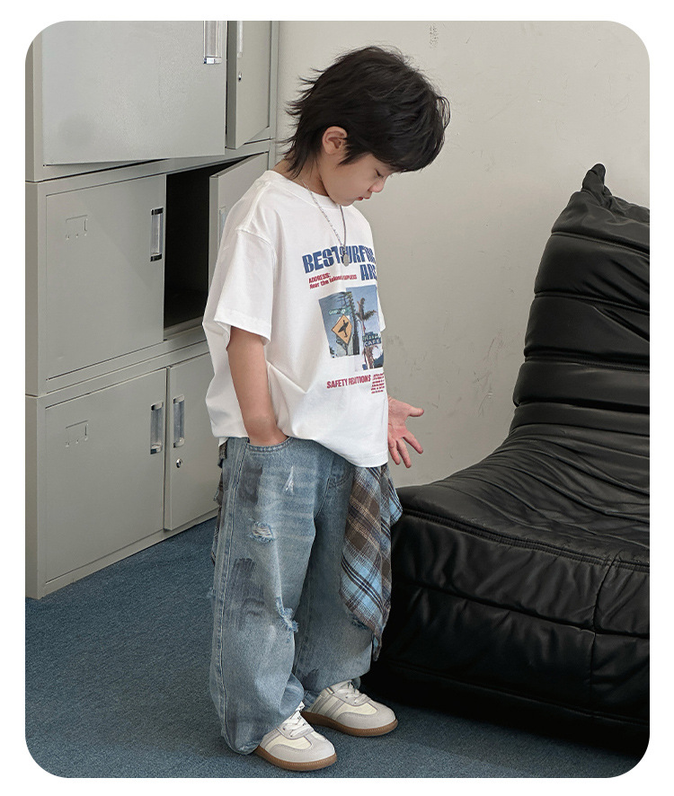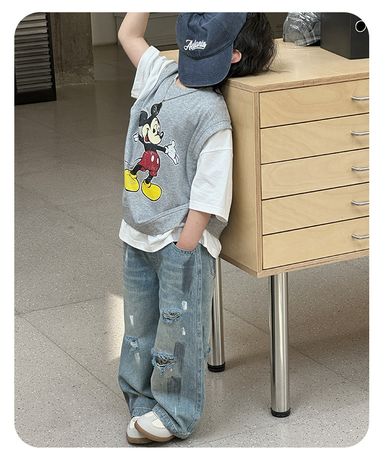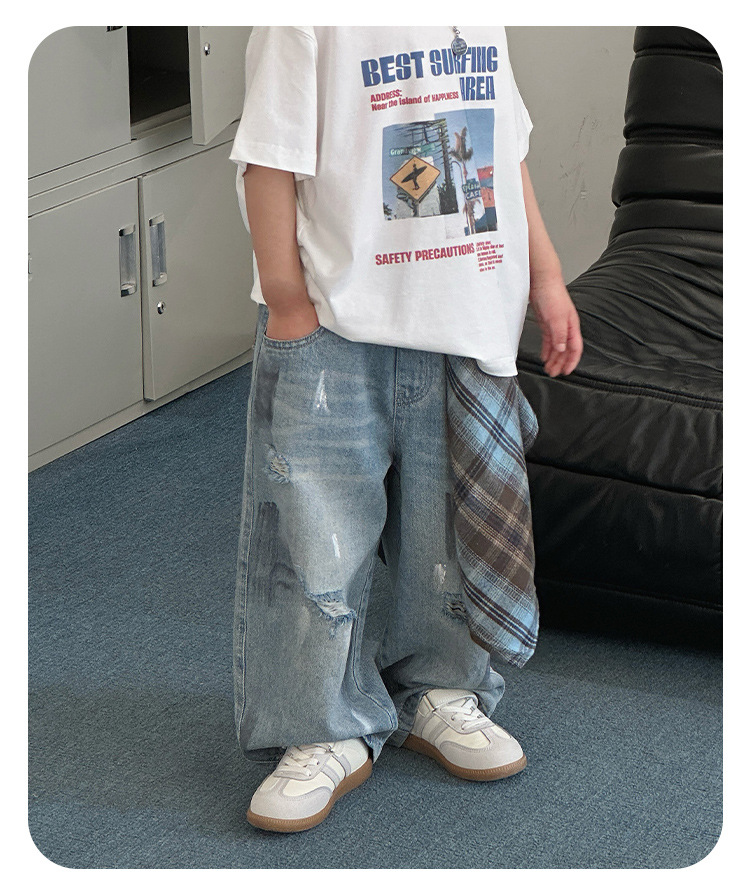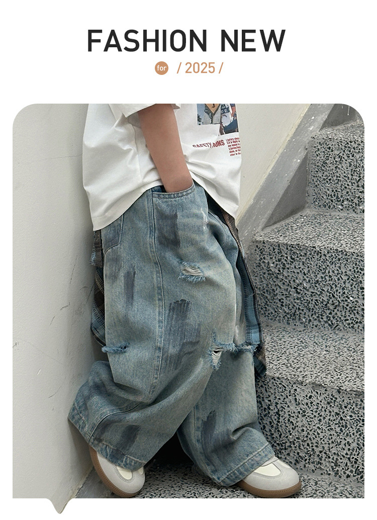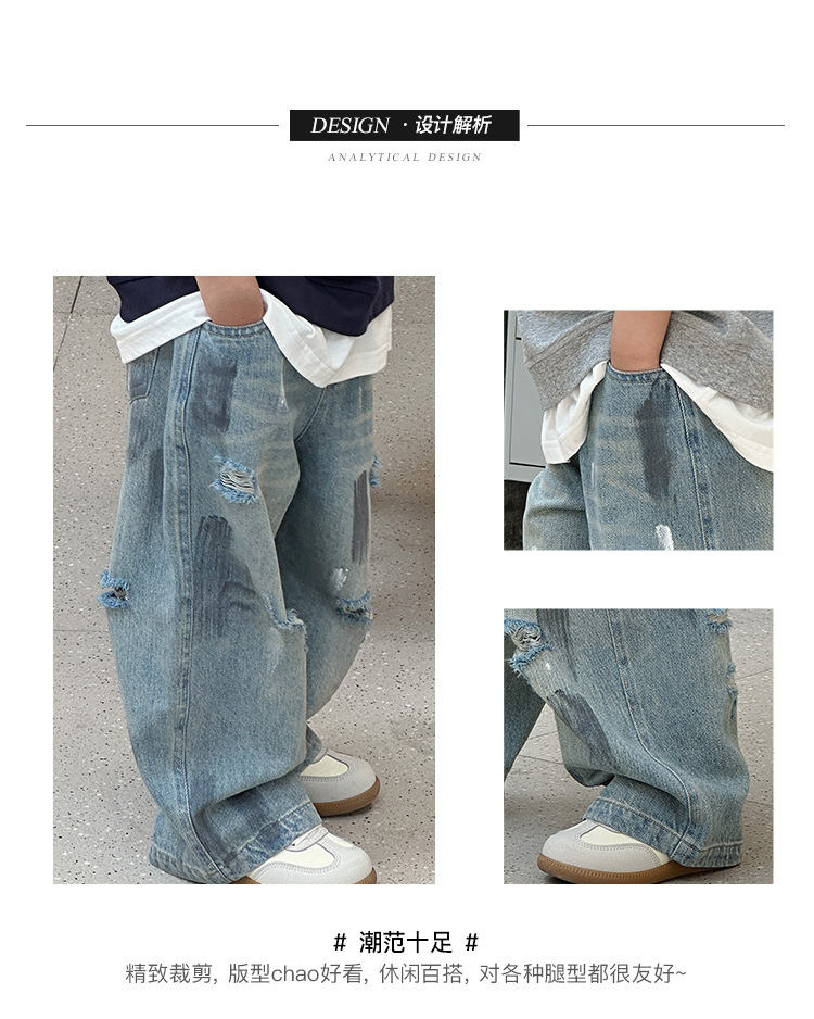 243082 아동용 봄, 가을 패션 트렌디 다용도 루즈 캐주얼 데님 바지