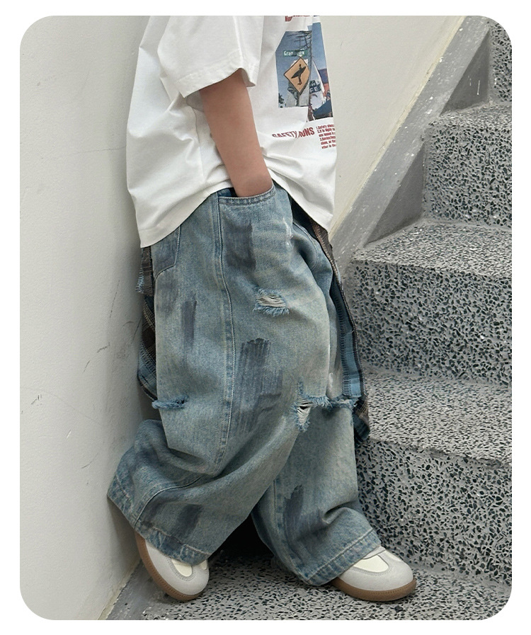 243082 아동용 봄, 가을 패션 트렌디 다용도 루즈 캐주얼 데님 바지스토어 가기