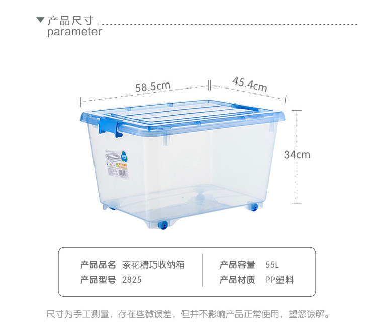 동백 플라스틱 보관 상자 어린이 장난감 의류 보관 상자 도르래가있는 대형 보관 상자 투명 보관 상자