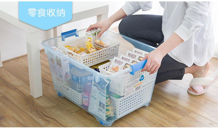 동백 플라스틱 보관 상자 어린이 장난감 의류 보관 상자 도르래가있는 대형 보관 상자 투명 보관 상자스토어 가기