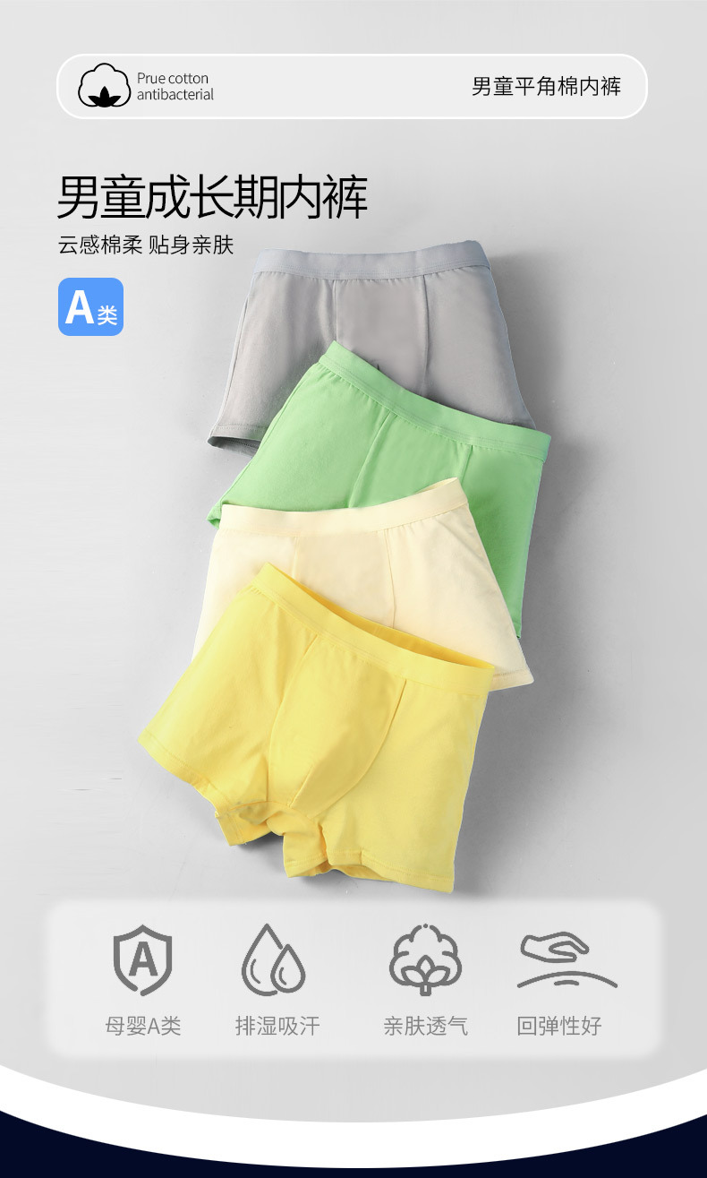 아동 속옷, 남아용 순면 사각팬티, 중대형 남아용 사각팬티, 청소년 및 학생용 항균 반바지스토어 가기