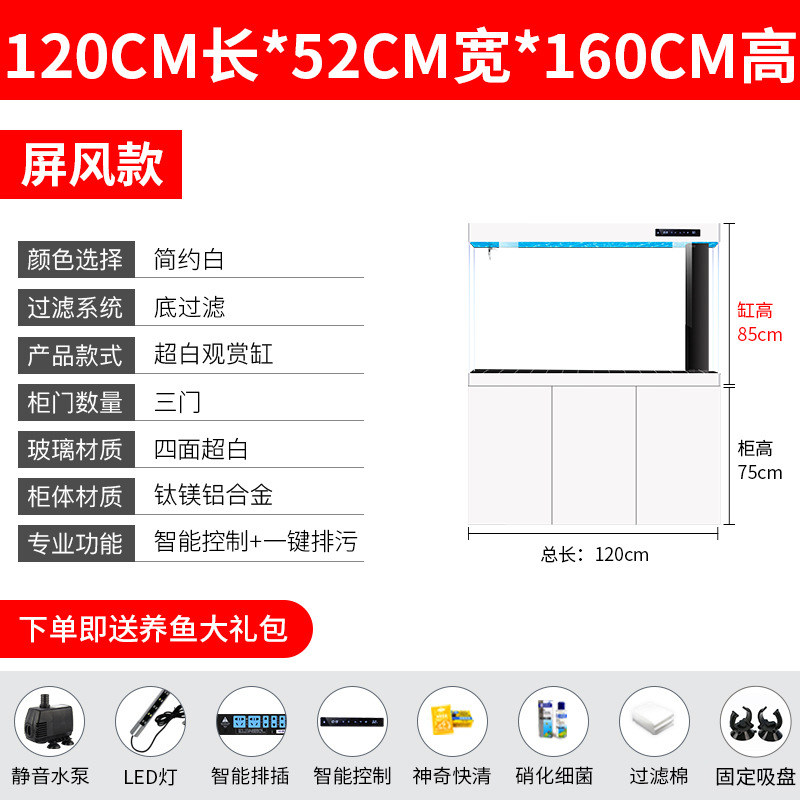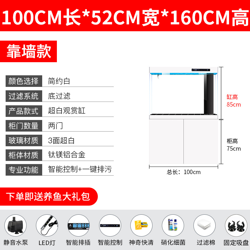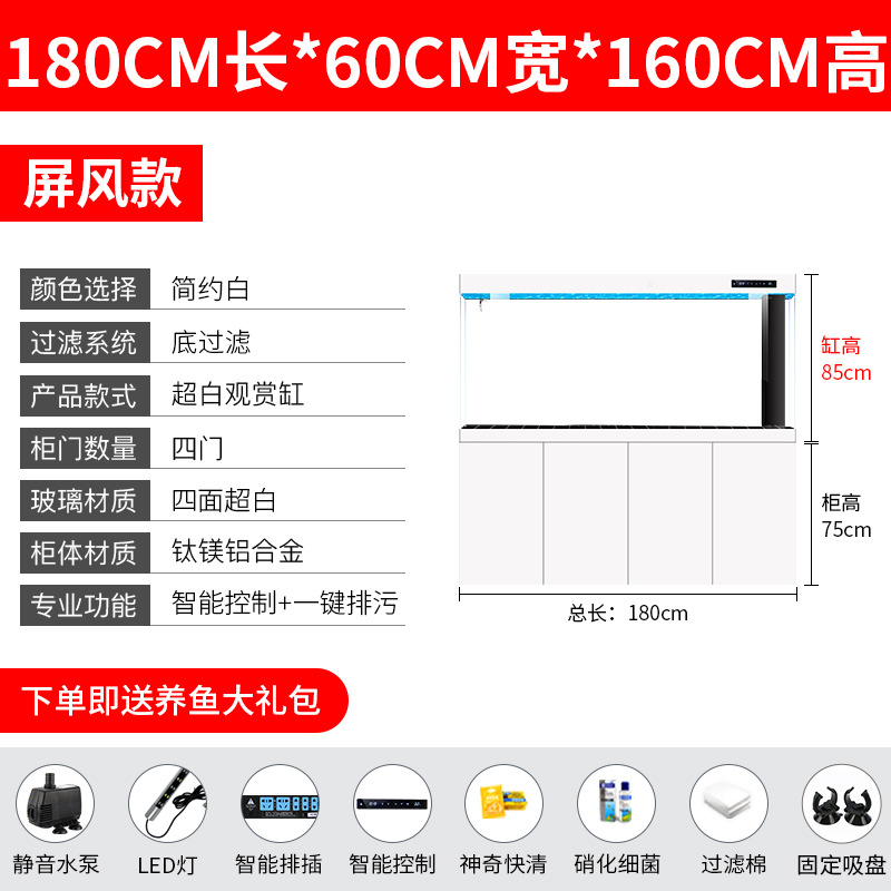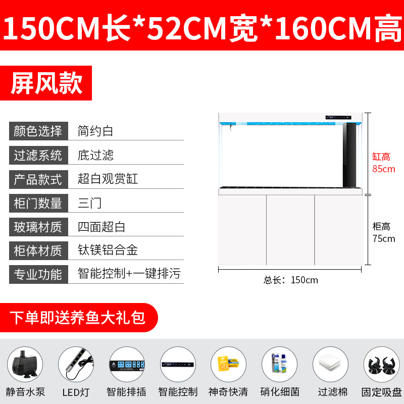 Opel 2025 새로운 수조 홈 거실 바닥 중형 및 대형 초백색 생태 스크린 바닥 필터 수족관스토어 가기