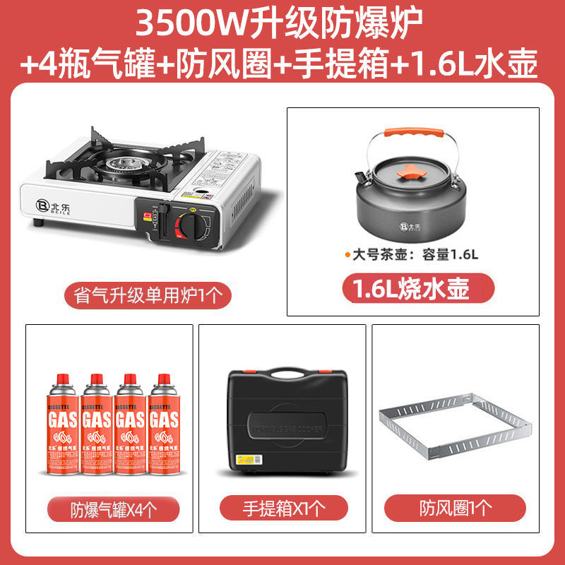 • 업그레이드된 방폭로 + 방풍링 + 여행가방 + 가스 4병