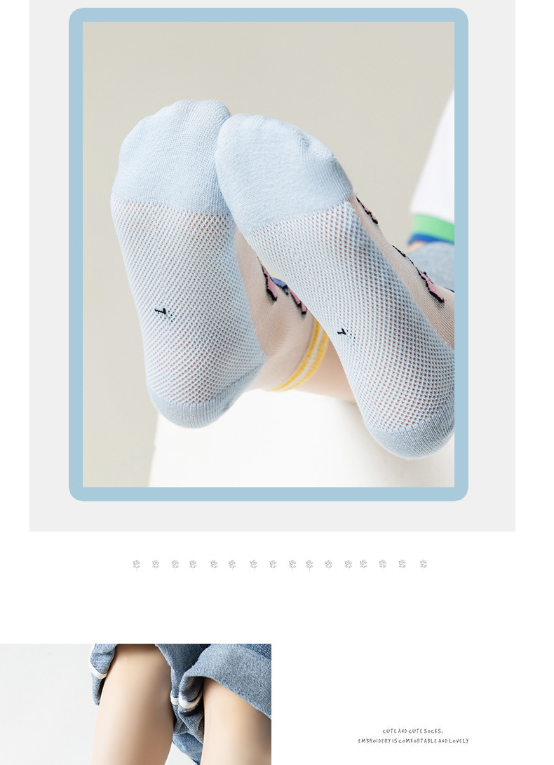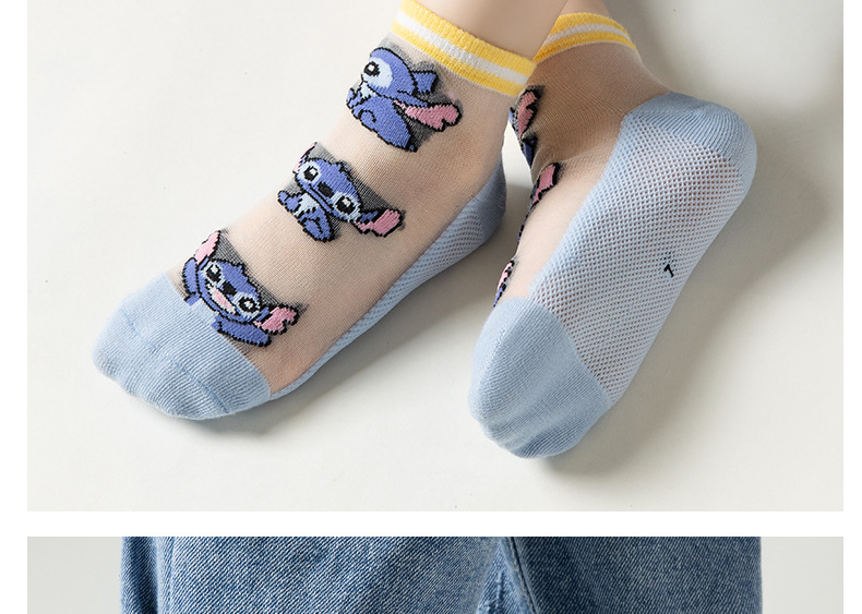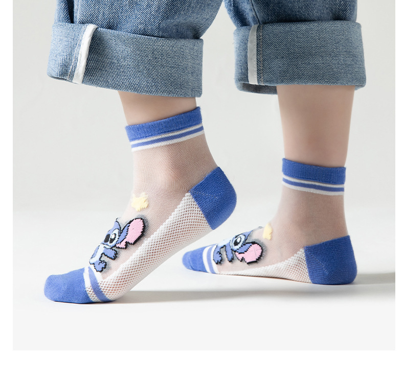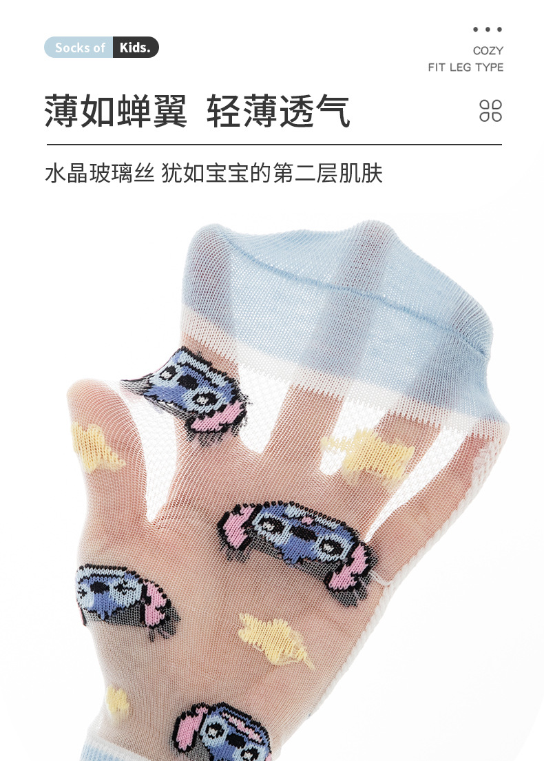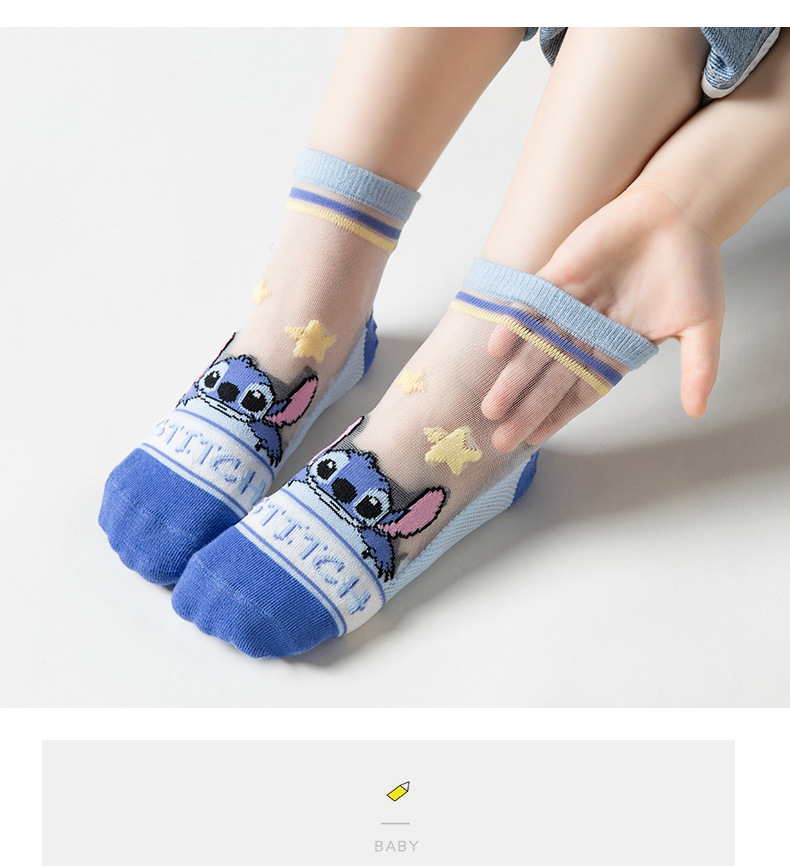 여름 어린이 얼음 실크 양말 소년 초박형 메쉬 귀여운 스티치 만화 양말 큰 어린이를위한 크리스탈 양말