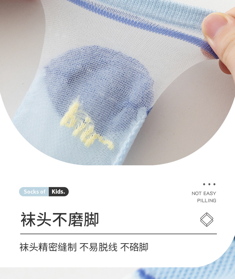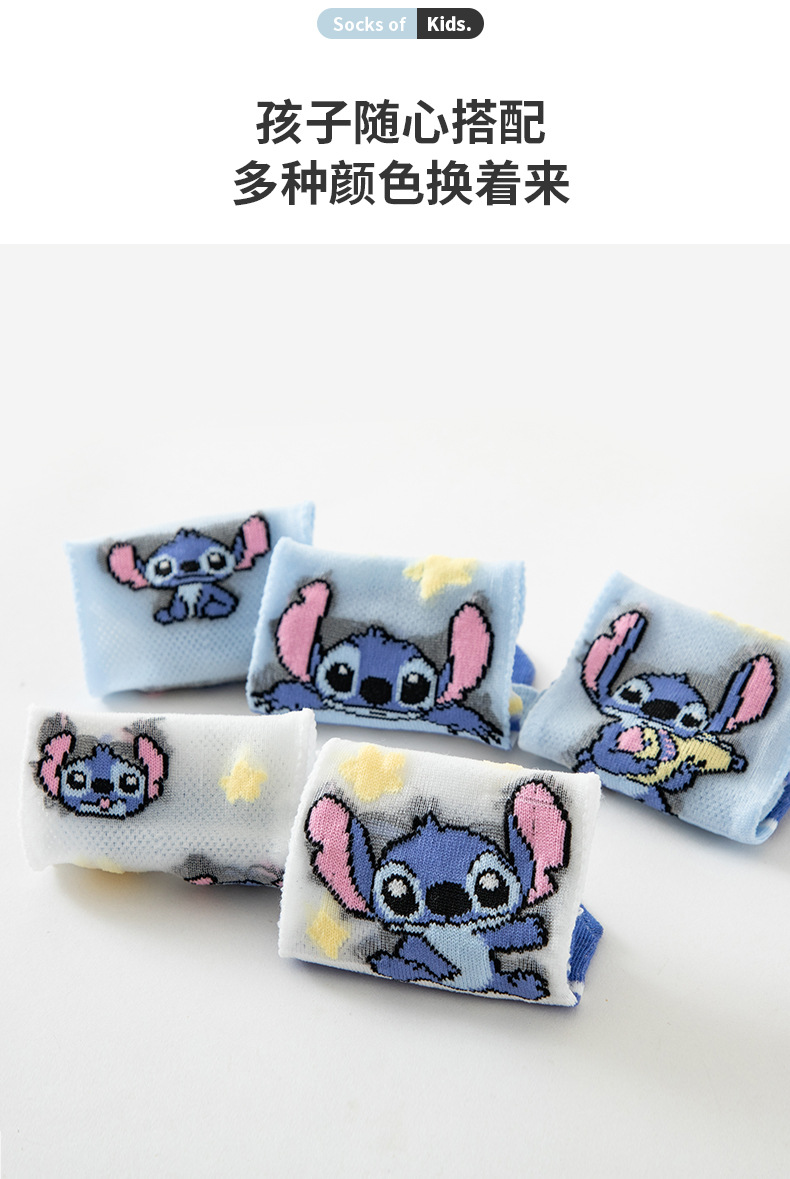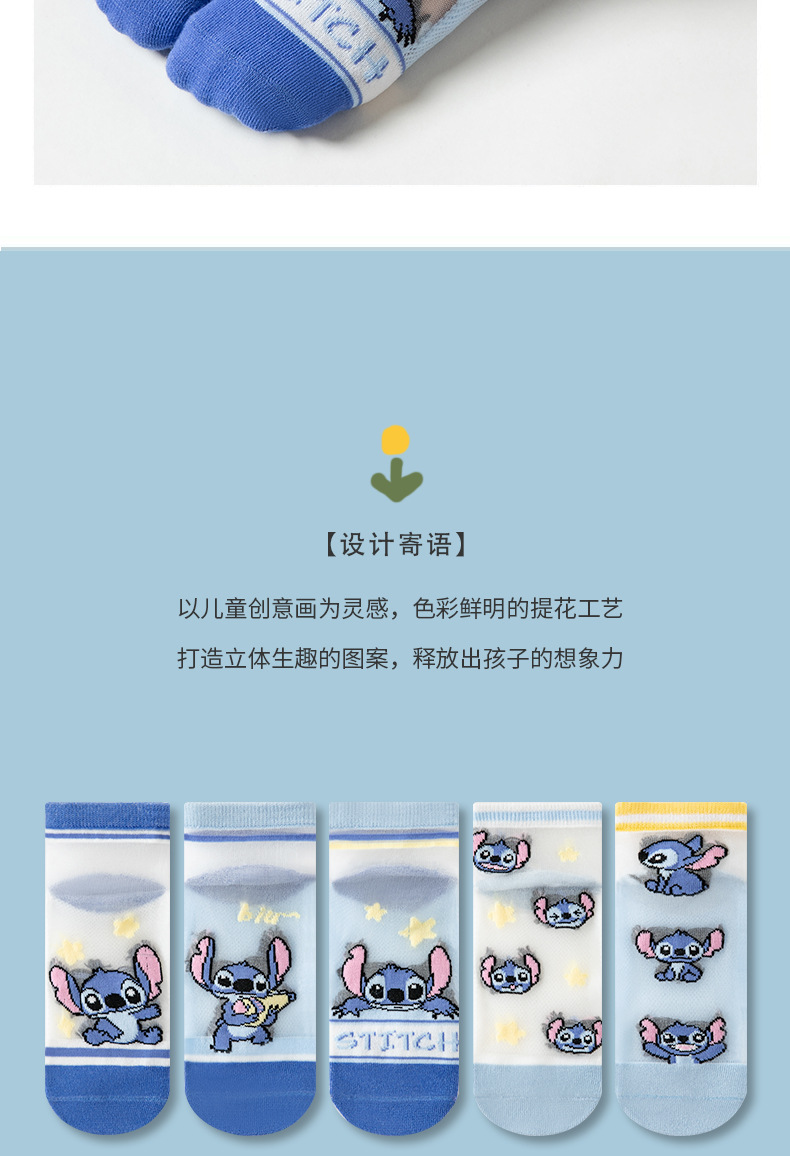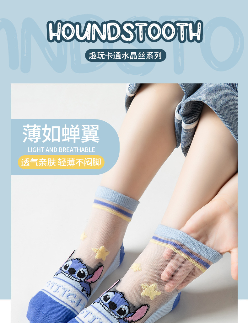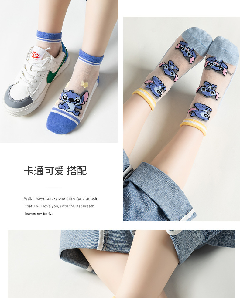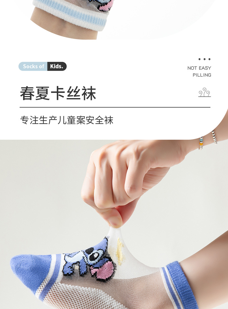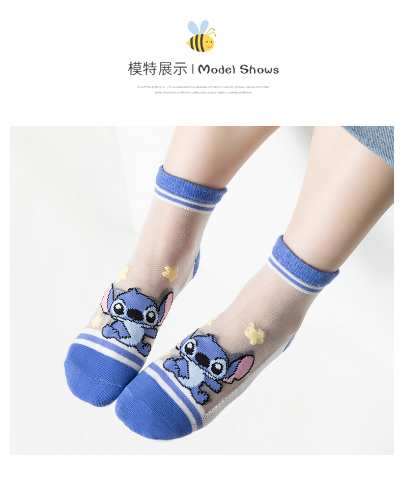 여름 어린이 얼음 실크 양말 소년 초박형 메쉬 귀여운 스티치 만화 양말 큰 어린이를위한 크리스탈 양말스토어 가기