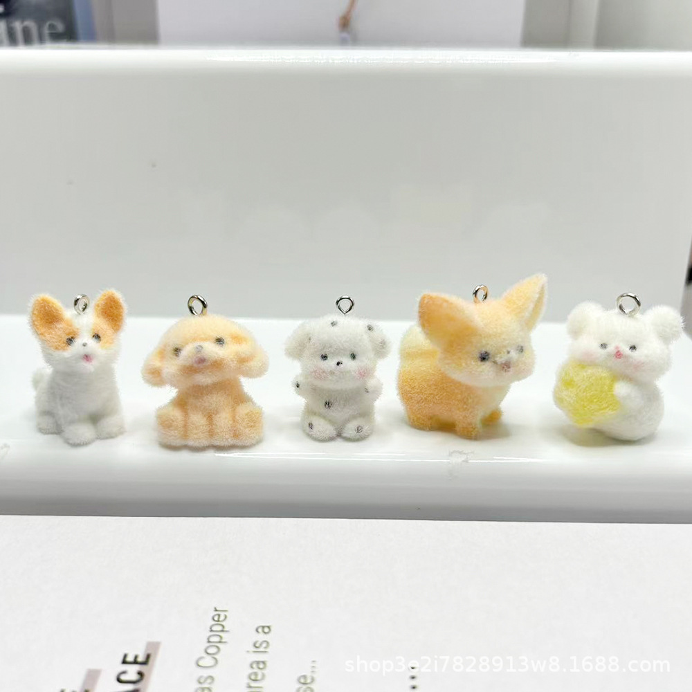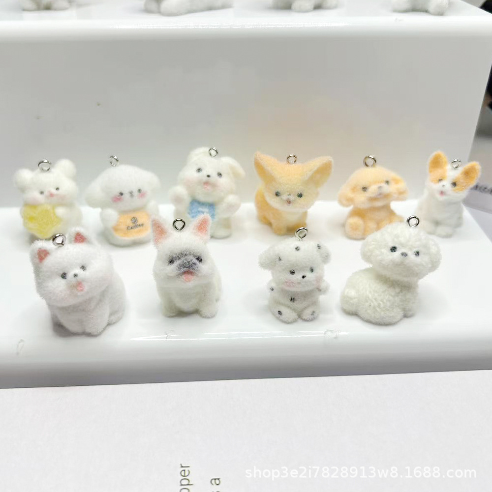 새로운 수지 벨벳 펜던트 귀여운 입체 동물 개 키 체인 미니 인형 DIY 휴대 전화 펜던트스토어 가기