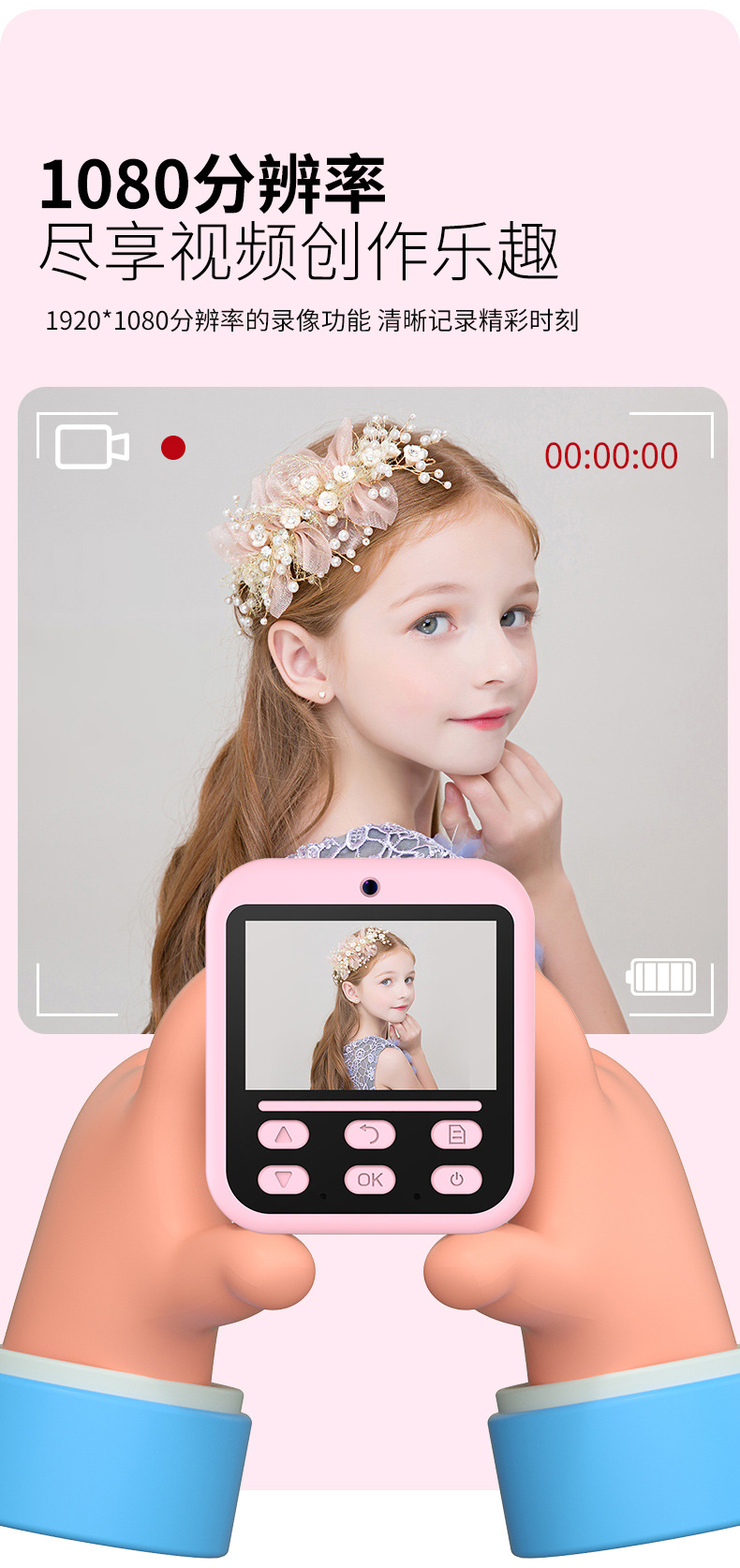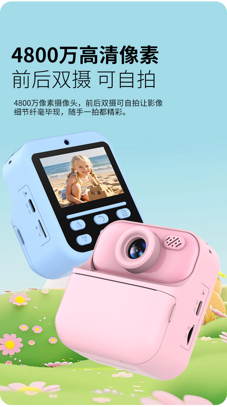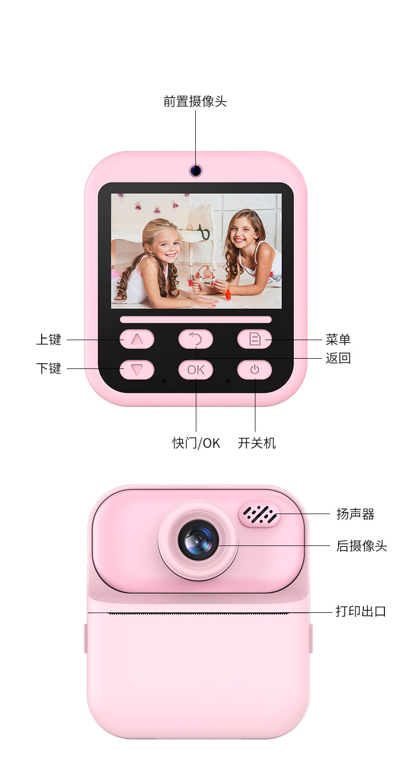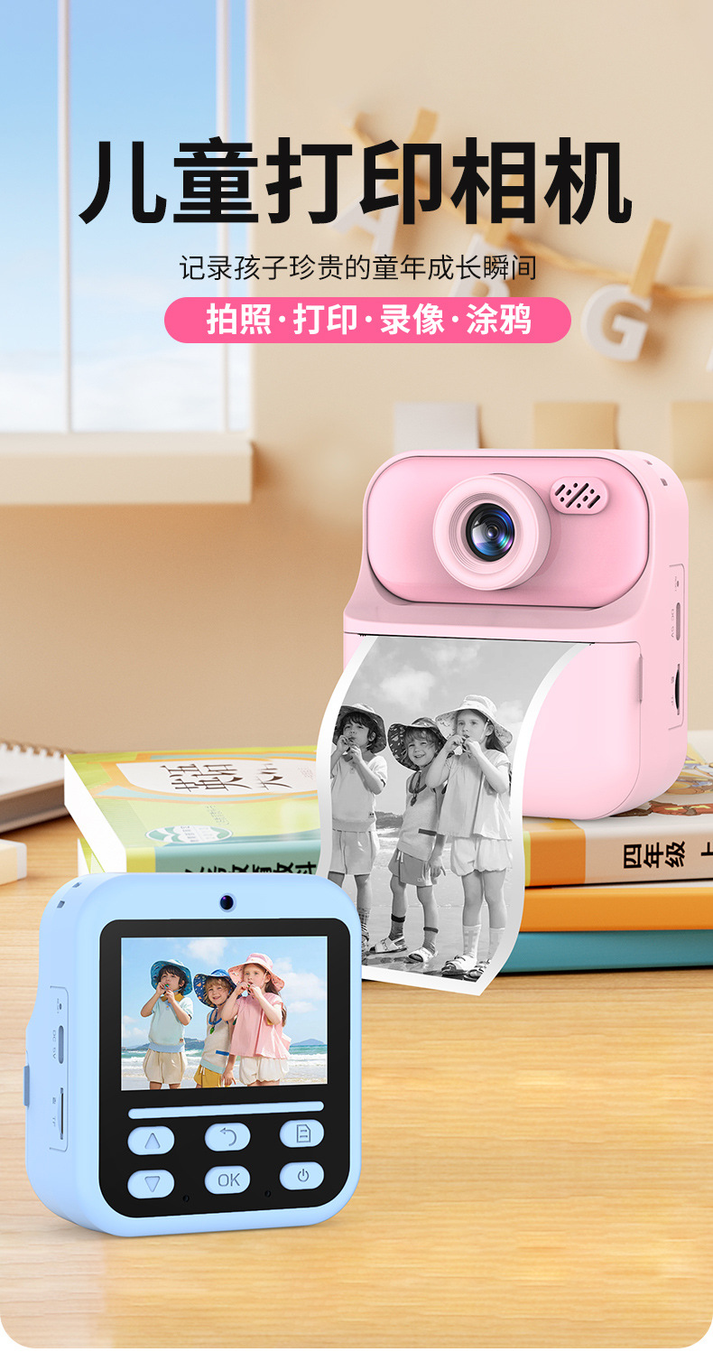 새로운 어린이 인쇄 카메라 HD 만화 비디오 듀얼 카메라 미니 장난감 어린이 디지털 카메라