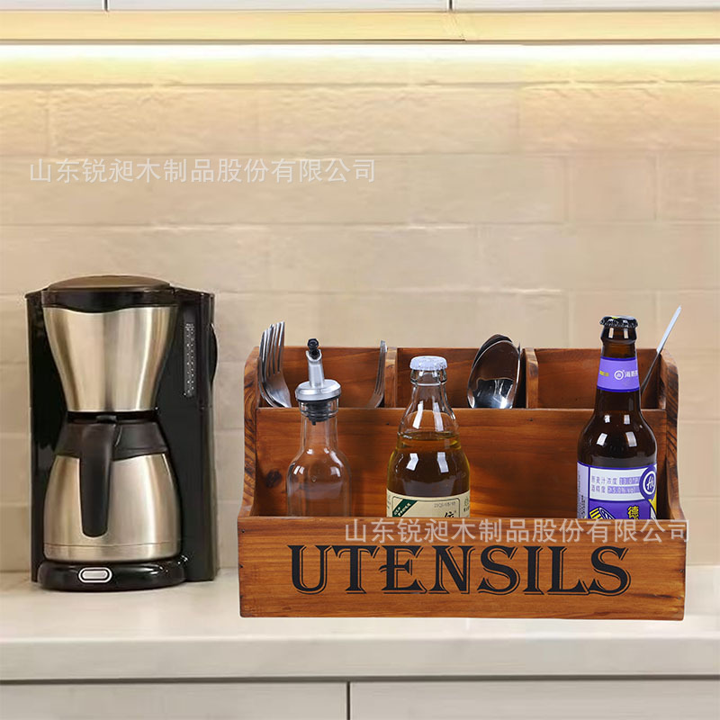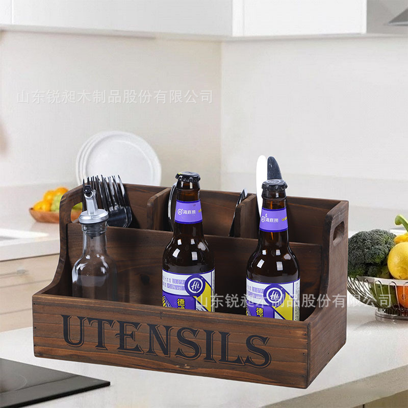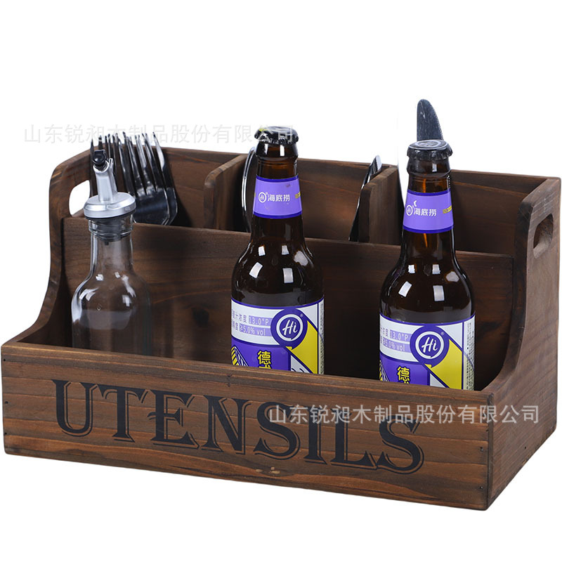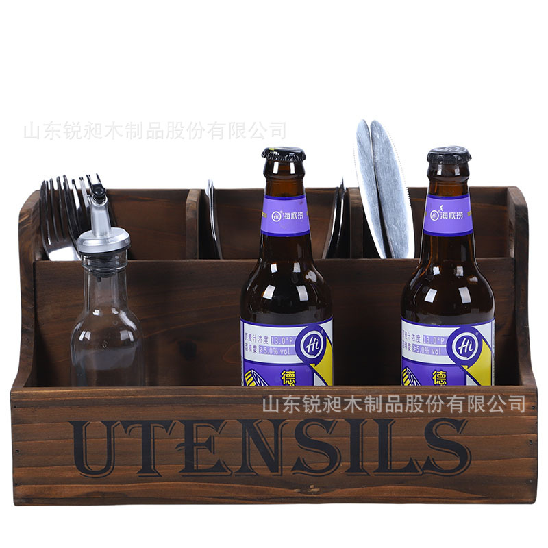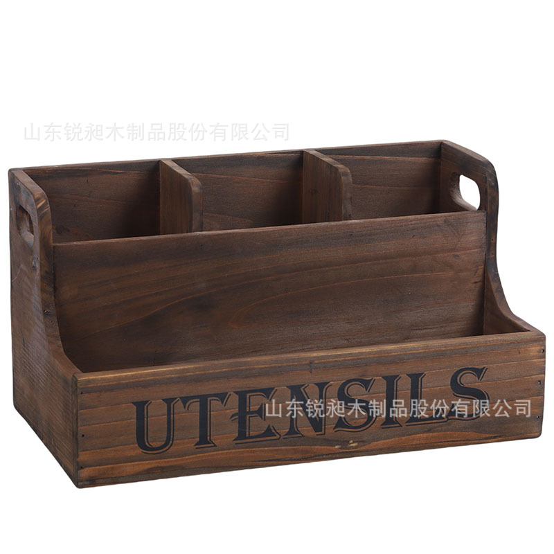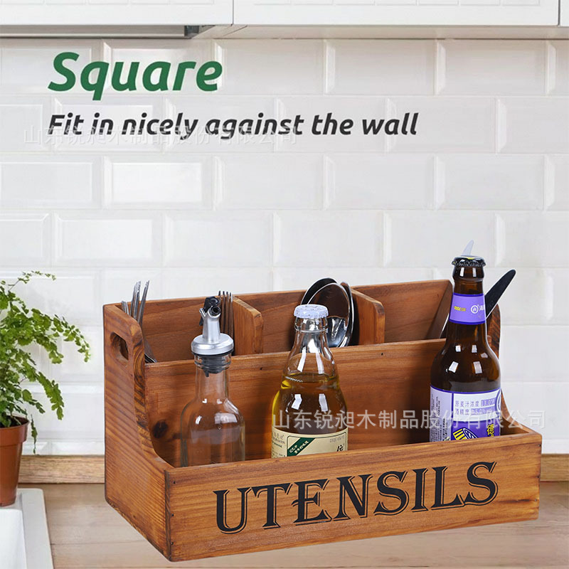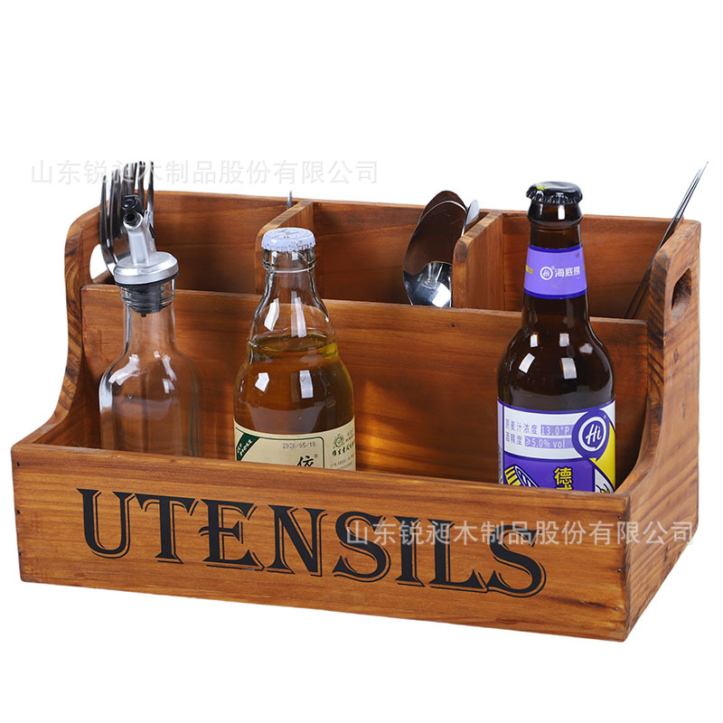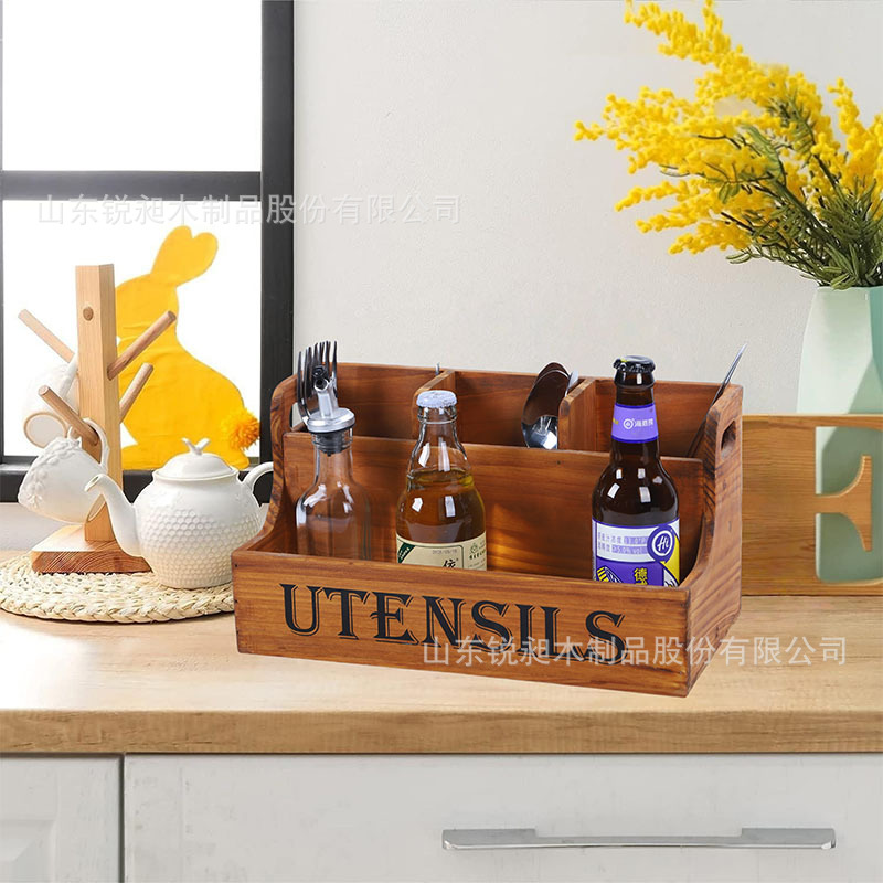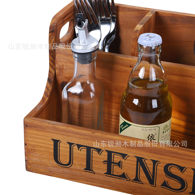휴대용 나무 복고풍 식기 보관 상자, 칼과 포크 보관 상자, 단단한 나무 데스크탑 요리 도구 보관 상자스토어 가기