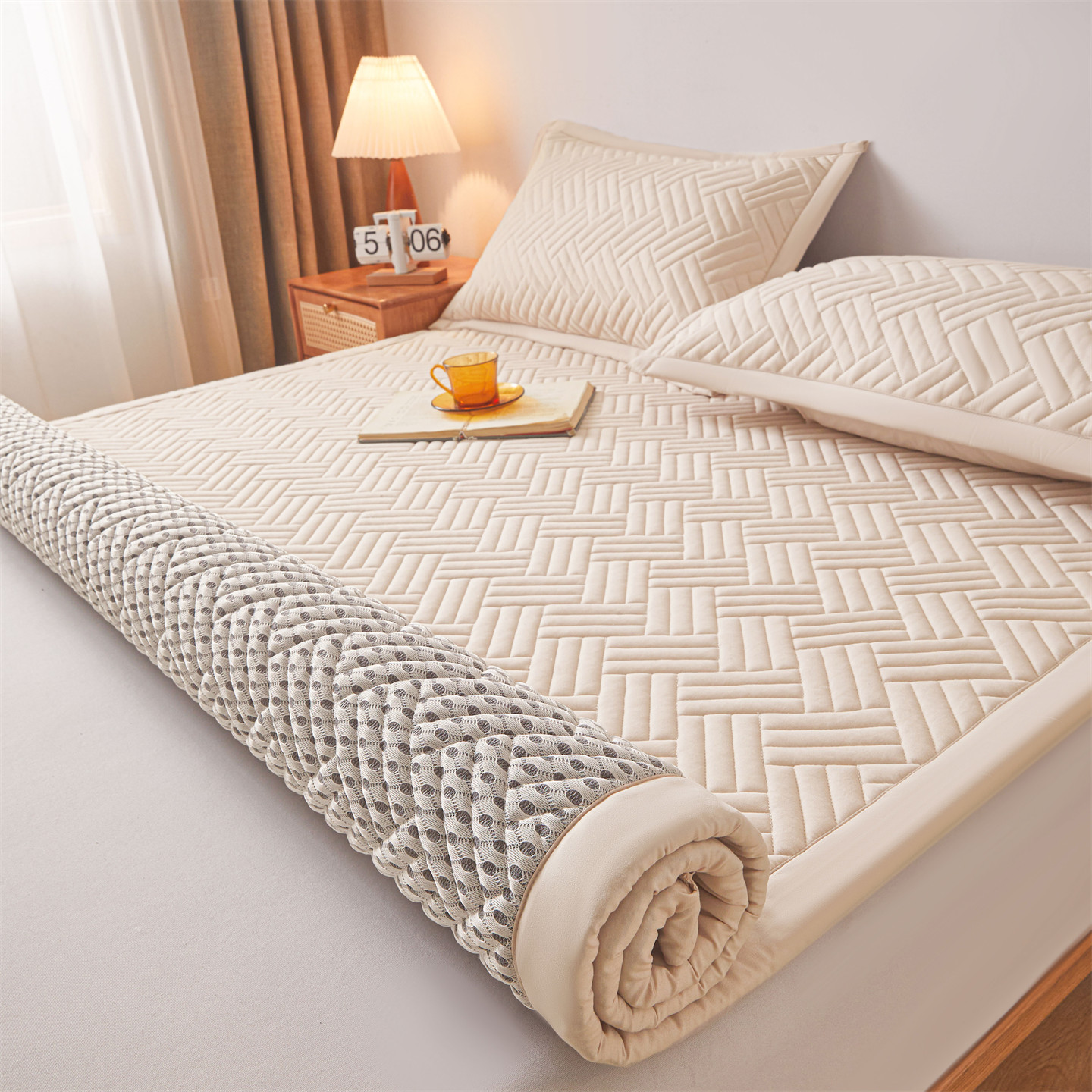 클래스 A 매트리스 3피스 세트 임대 기숙사 매트리스 피부 친화적인 퀼팅 싱글 얇은 매트 이불 침대 패드