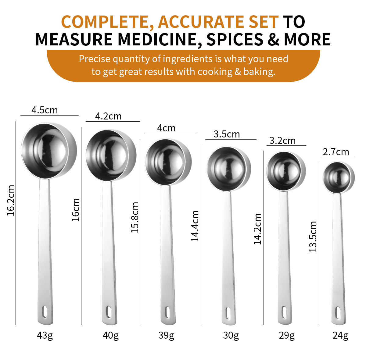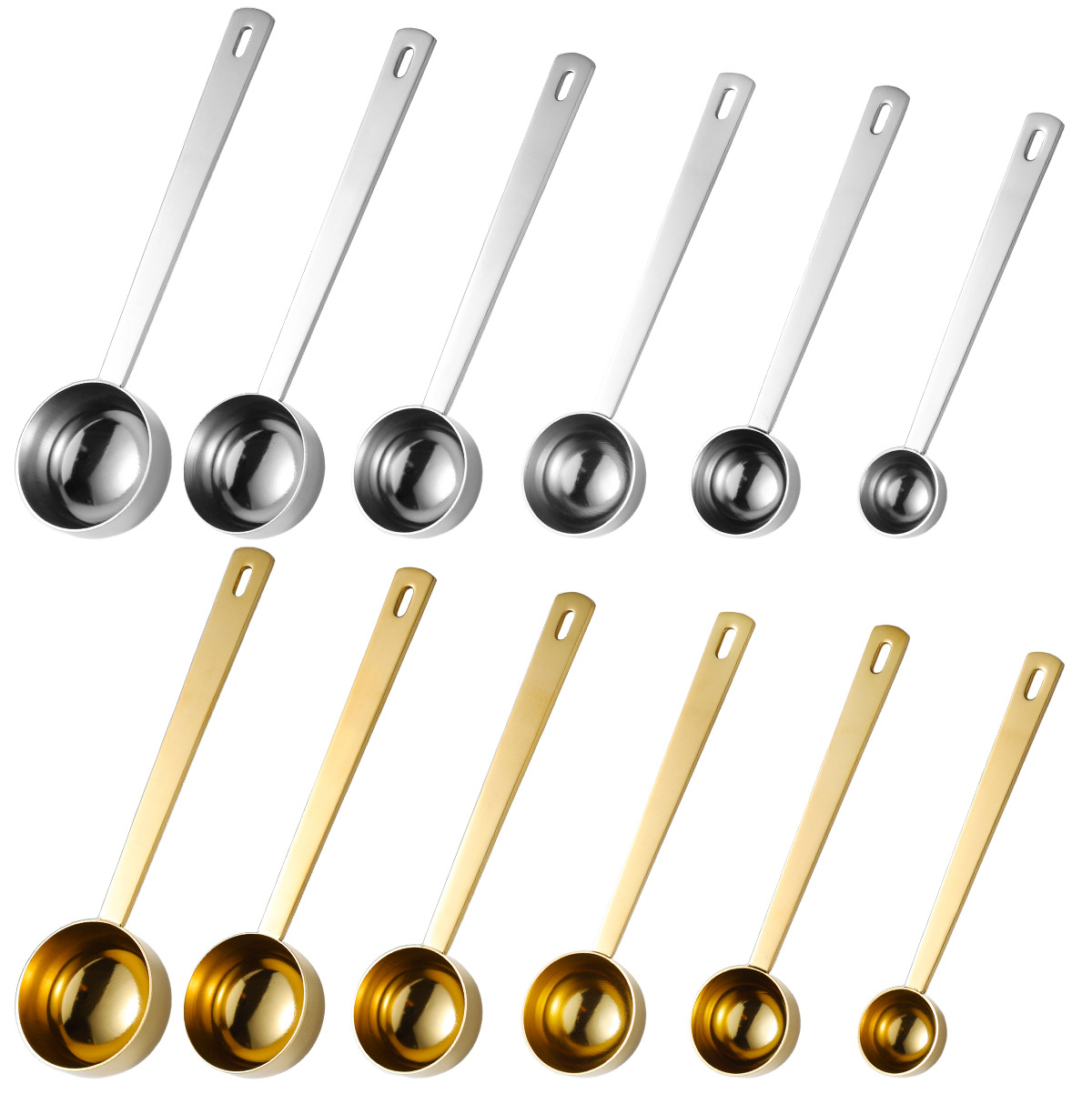 국경 간 스테인레스 스틸 측정 숟가락 5-30ml 측정 숟가락 커피 콩 밀크 파우더 숟가락 주방 베이킹 용품 손잡이가있는 칵테일 숟가락