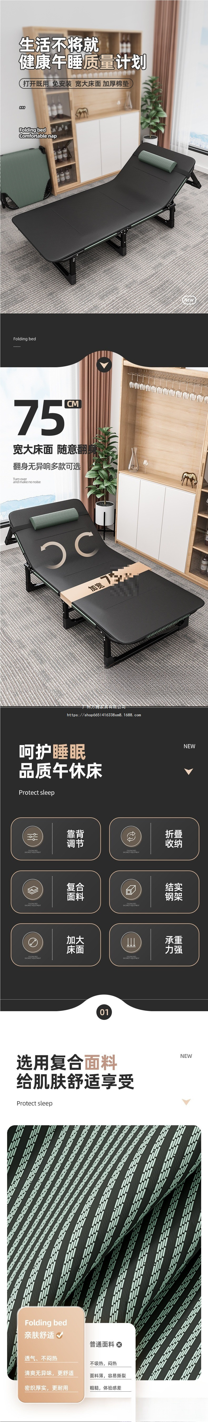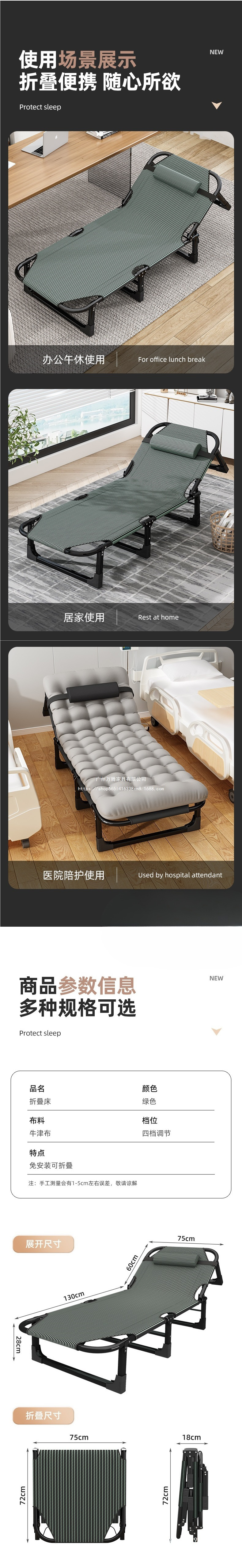 WanTeng 접이식 침대 시트, 가정용 간단한 점심 시간, 사무실 성인 낮잠 캠프 침대, 편리한 WanTeng스토어 가기
