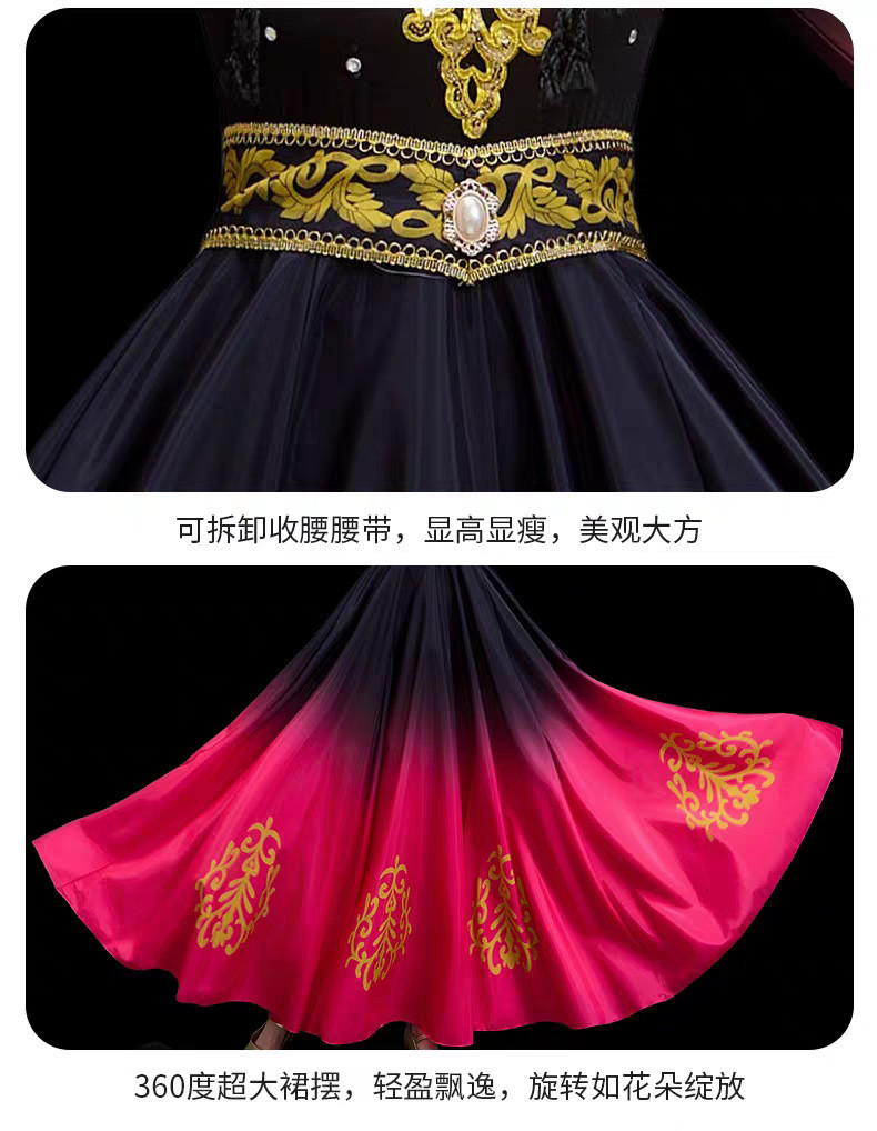 시진 댄스 공연 의상, 민족 스타일 우이족 오프닝 댄스 스윙 스커트, 예술 시험 공연 의상, 여성 성인 롱 스커트