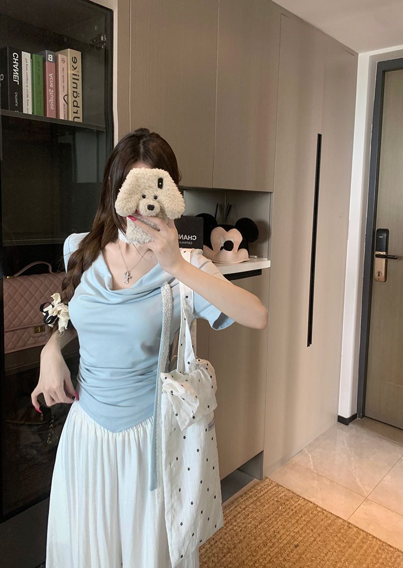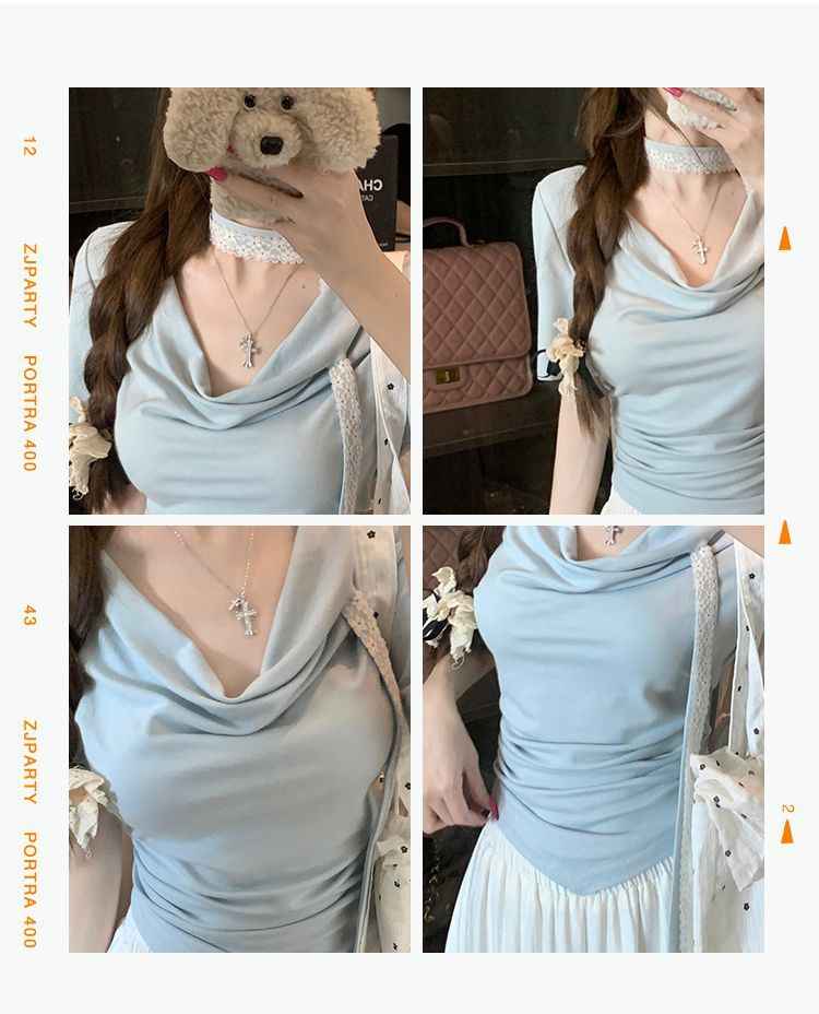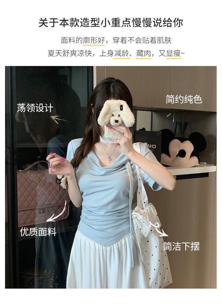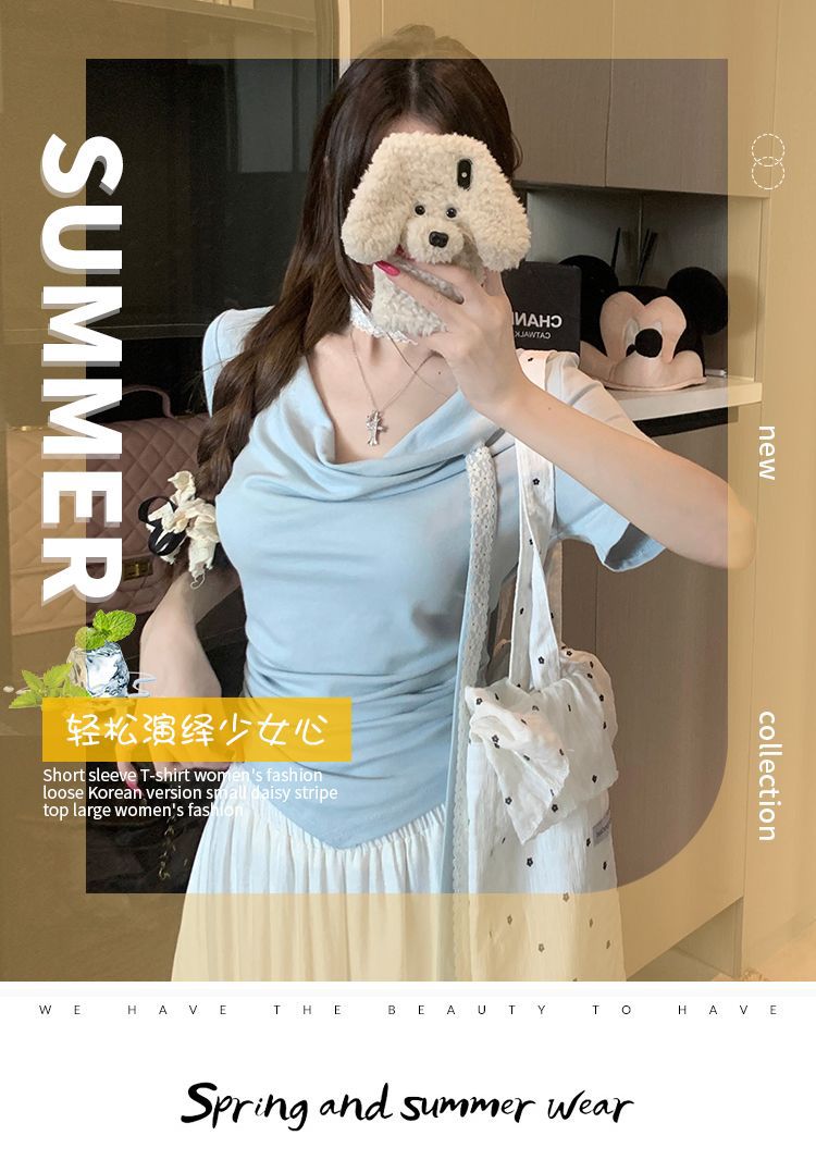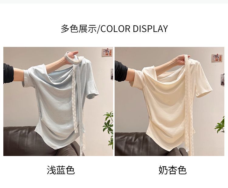 2025년 새로운 여름 스타일 한국 스타일 슬림핏 불규칙한 연령 감소 스윙 칼라 반팔 티셔츠 탑 여성용 시크스토어 가기