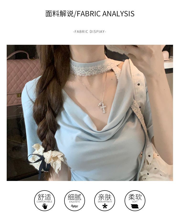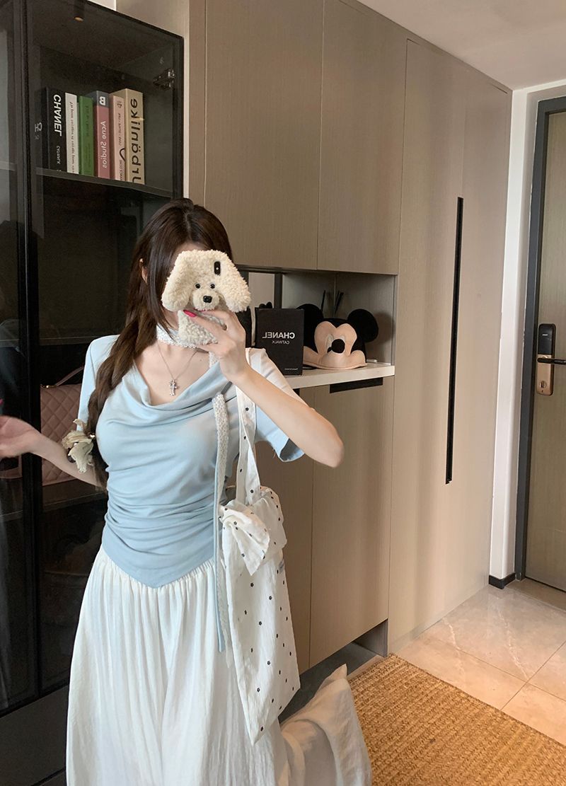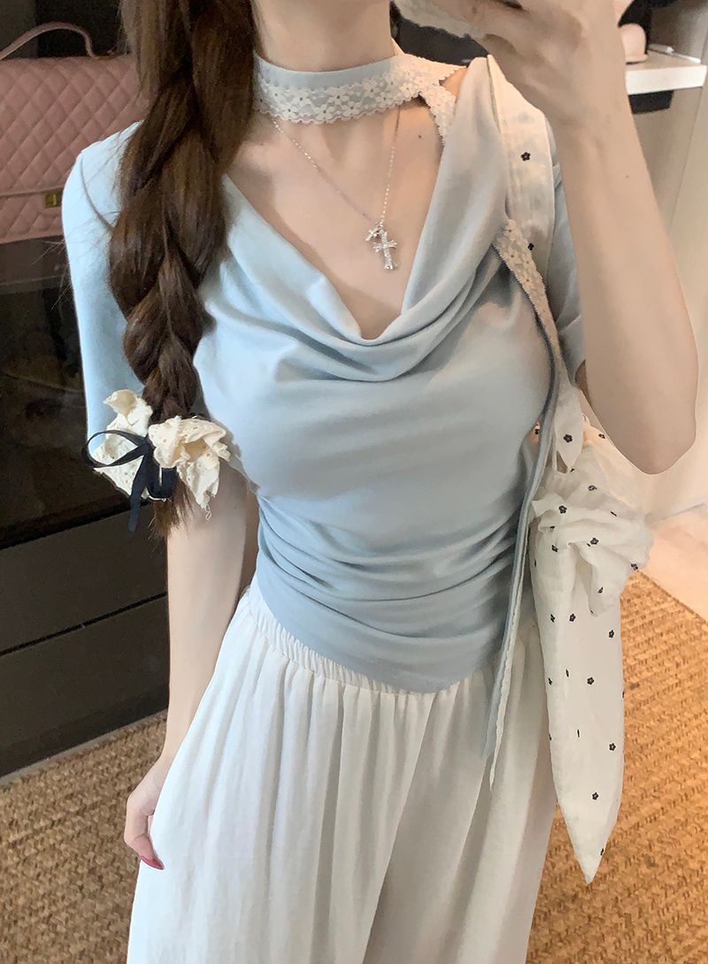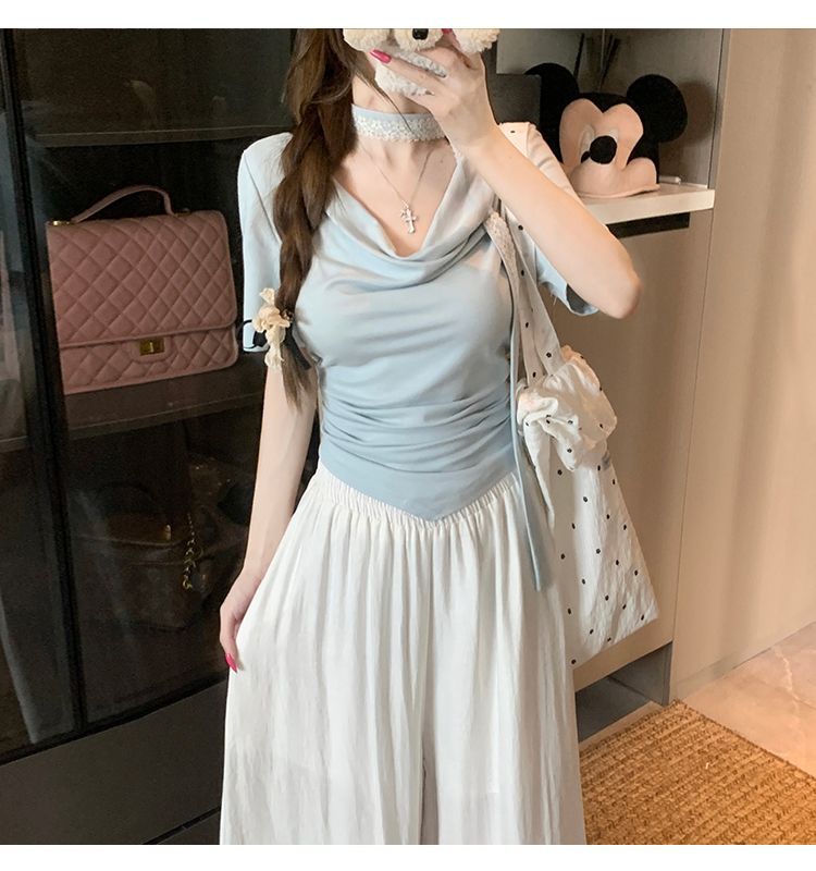 2025년 새로운 여름 스타일 한국 스타일 슬림핏 불규칙한 연령 감소 스윙 칼라 반팔 티셔츠 탑 여성용 시크스토어 가기