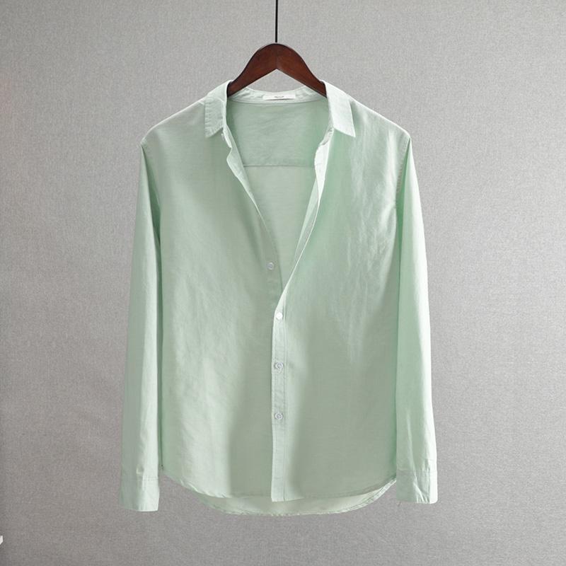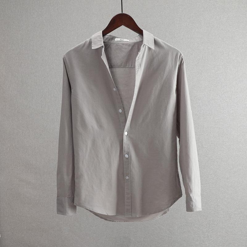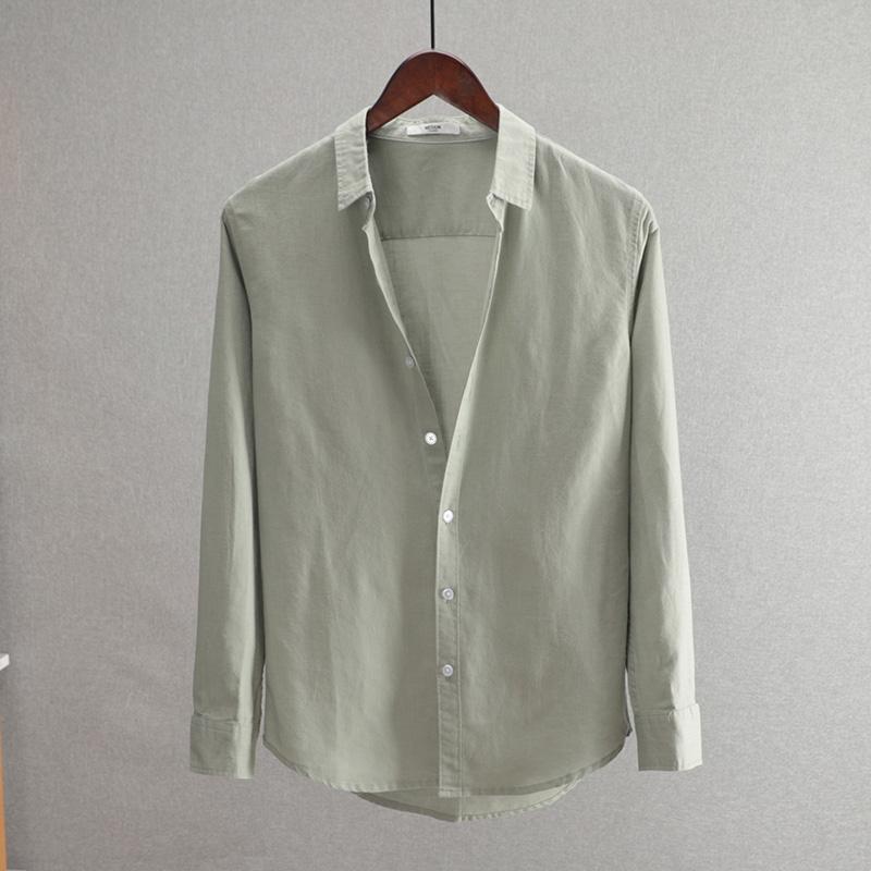 2025 새로운 비즈니스 캐주얼 남성 코튼 린넨 긴팔 셔츠 루즈 라펠 청소년 패션 솔리드 컬러 린넨 셔츠