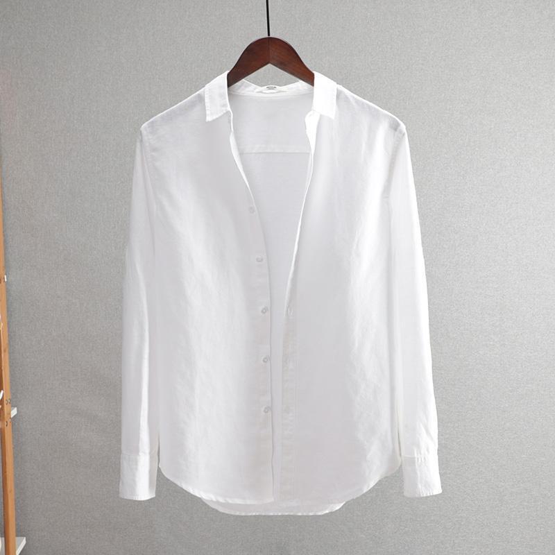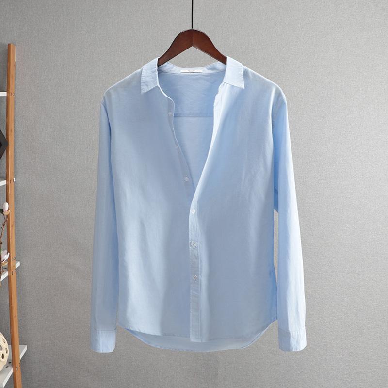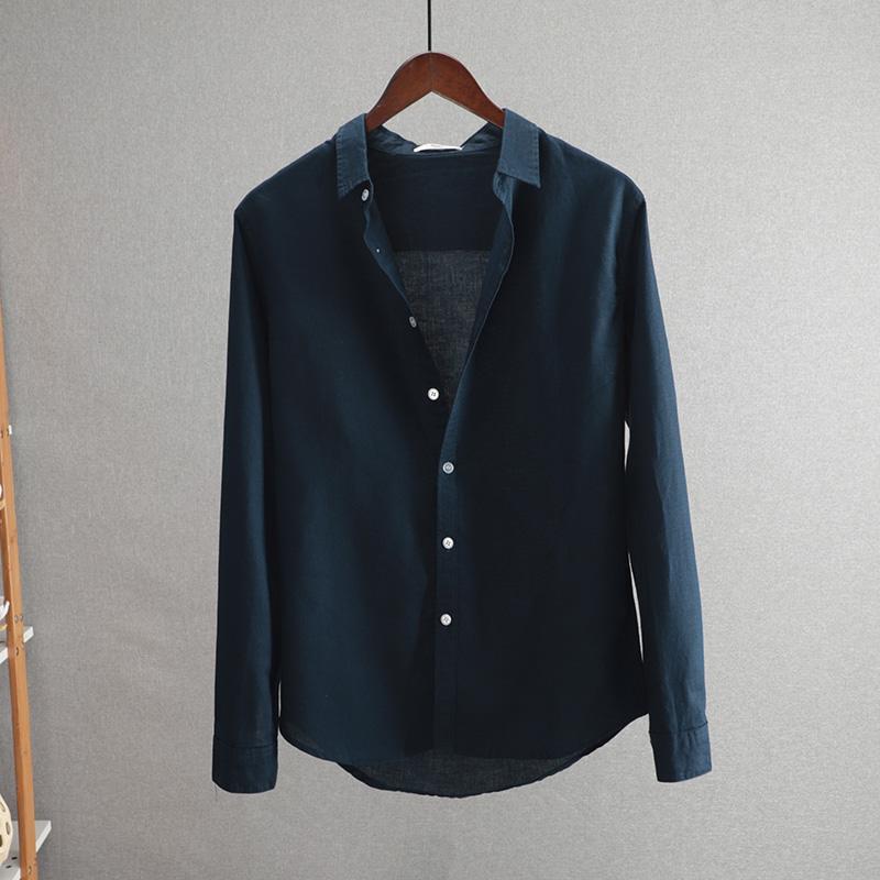 2025 새로운 비즈니스 캐주얼 남성 코튼 린넨 긴팔 셔츠 루즈 라펠 청소년 패션 솔리드 컬러 린넨 셔츠스토어 가기