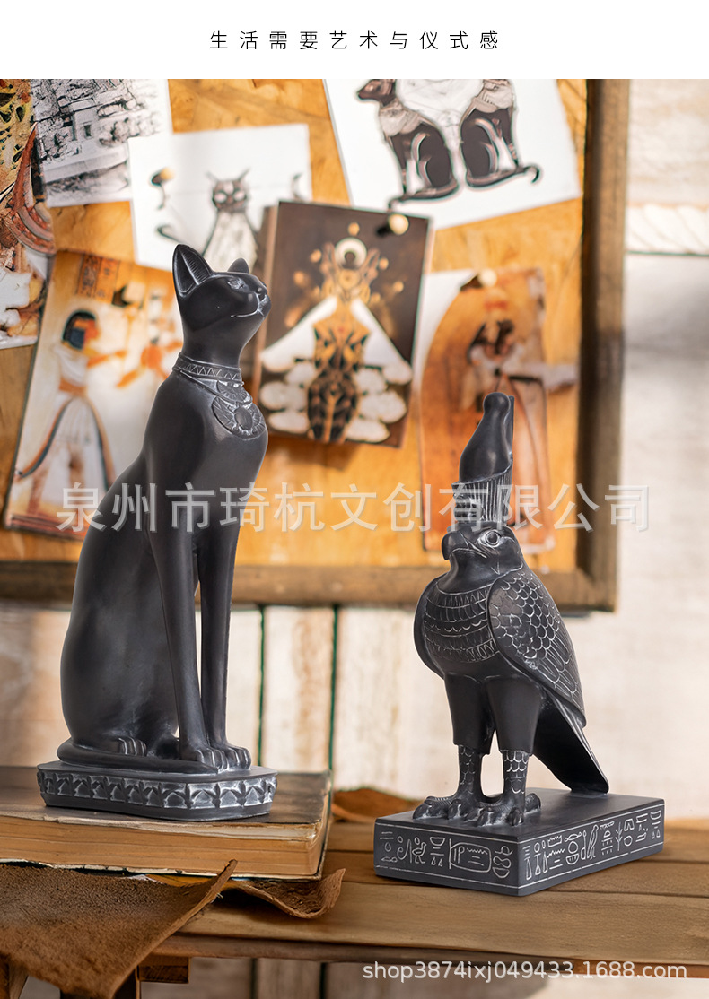 국경 간 인기 판매 미라 크리 에이 티브 장식품 이집트 여왕 신 고양이 팔콘 홀 수지 카운터탑 동상 장식품스토어 가기