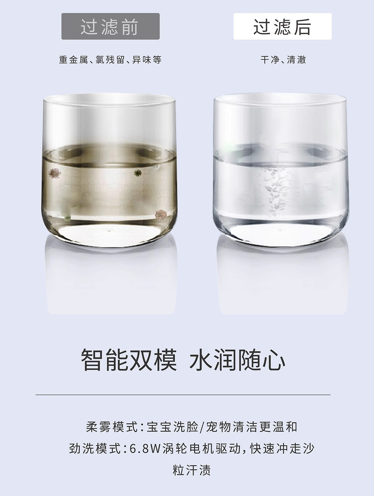 8.机身外壳材质使用日本东丽ABS,高性能户外有抗氧化,内部使用纯铜电机,使用寿命长,管道使用食品级硅胶,对皮肤无害无刺激,出水钢片采用德国进口机床加工,孔径稳定,出水细腻,底部采用活性炭过滤净水,对皮肤有帮助
