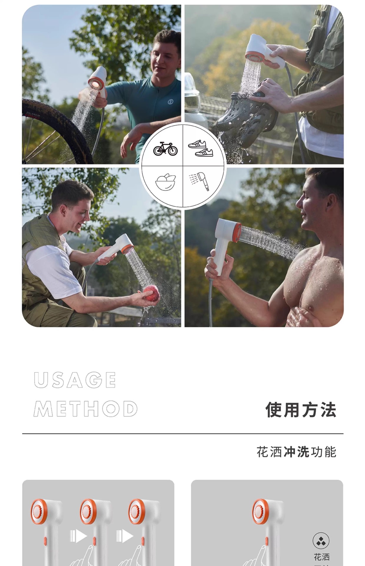 5、国内外shou 款集淋浴 照明一体的淋浴器,夜晚可当帐篷灯