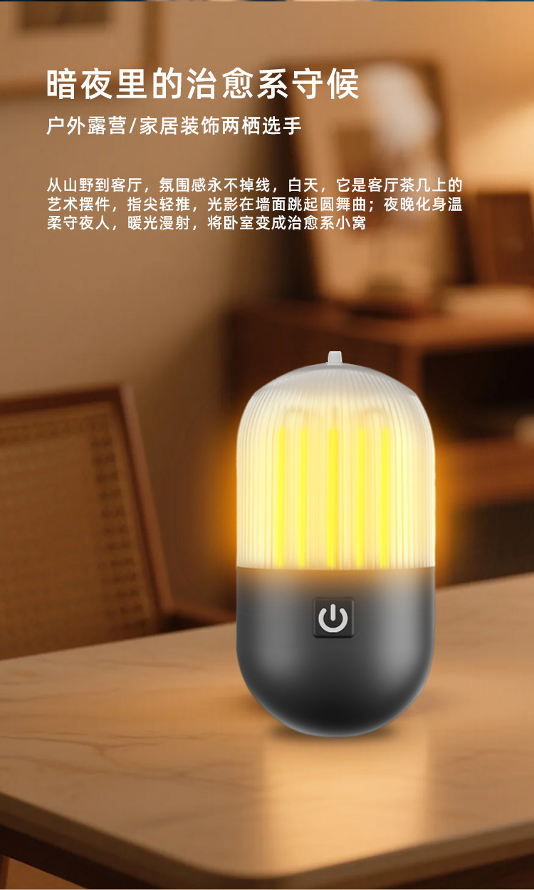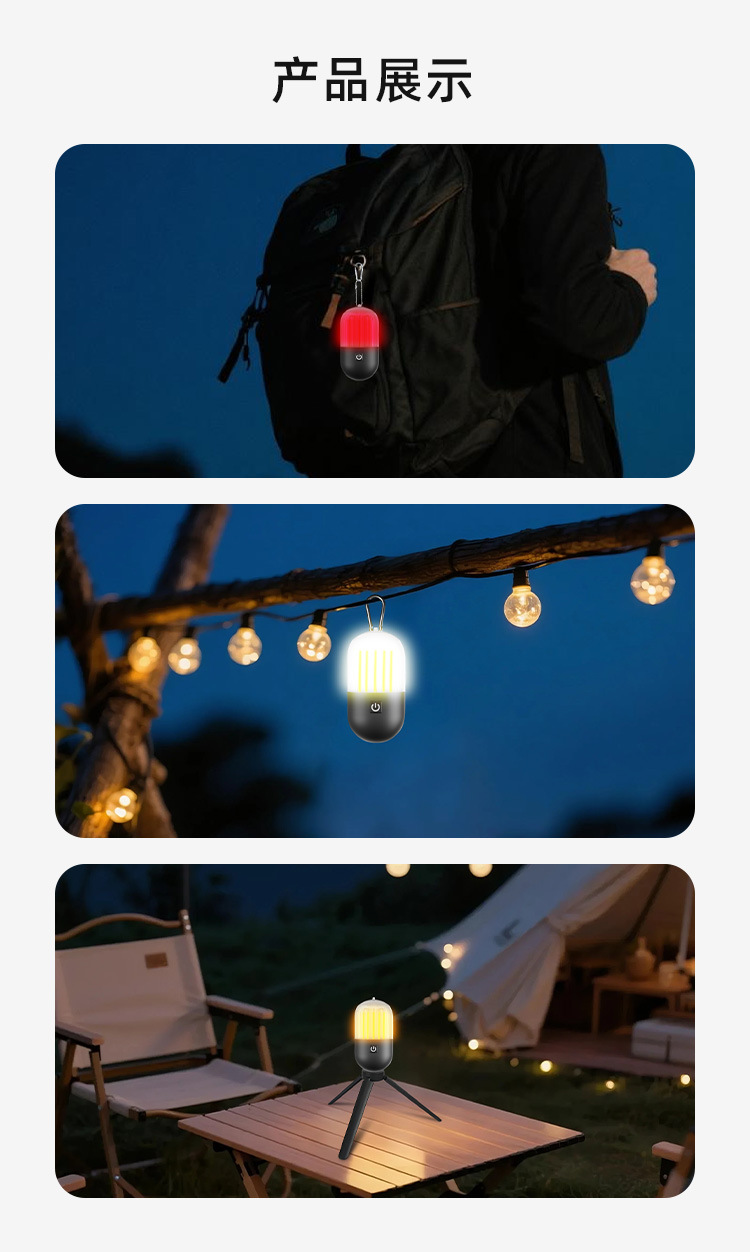 7. 广泛适用场景:可作为床头小夜灯,在夜晚为您提供柔和的光线,伴您安然入睡;在户外露营时,它能成为帐篷内的温馨光源,营造浪漫氛围,也可挂在帐篷外,照亮周围环境;还适用于野餐、徒步、钓鱼等各种户外活动。