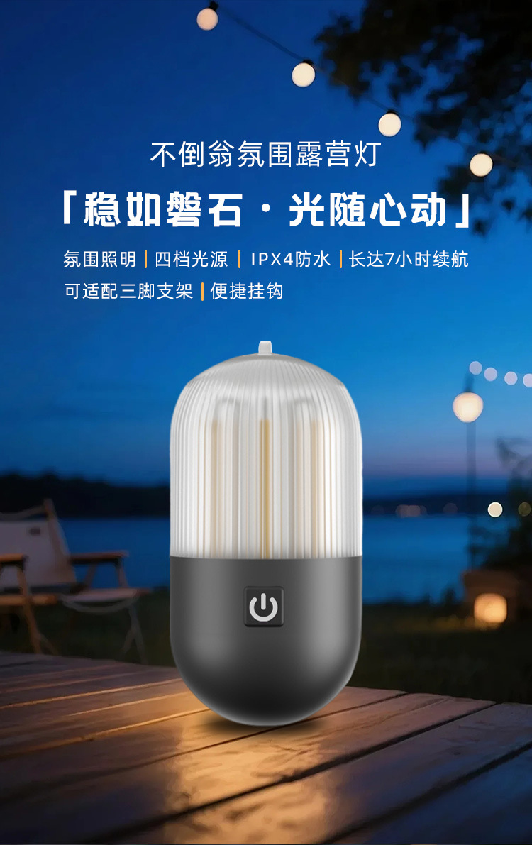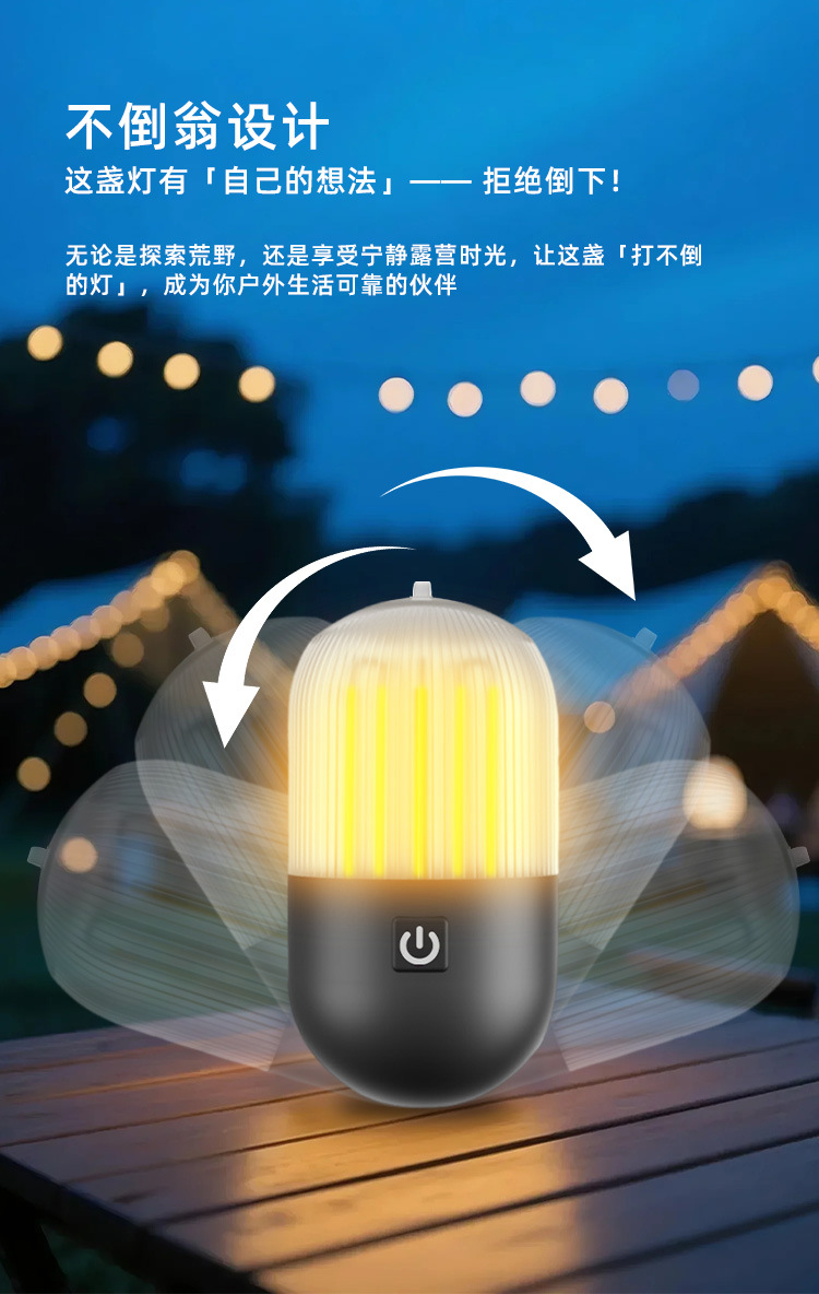 新款不倒翁露营灯充电不倒翁灯LED 小夜灯户外便携迷你氛围露营灯,融合了床头氛围灯、户外露营灯、帐篷灯等多种功能,是您生活与户外出行的理想照明伙伴。