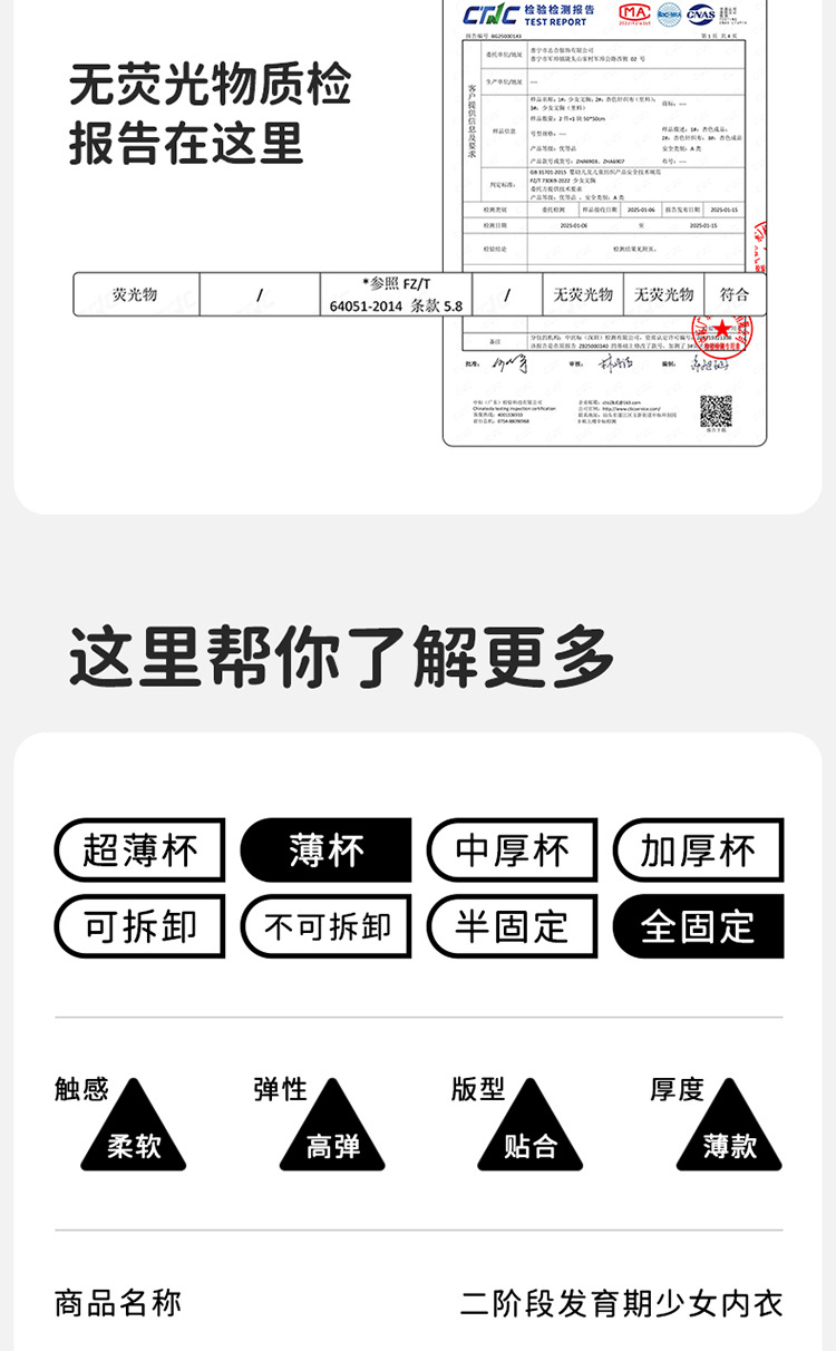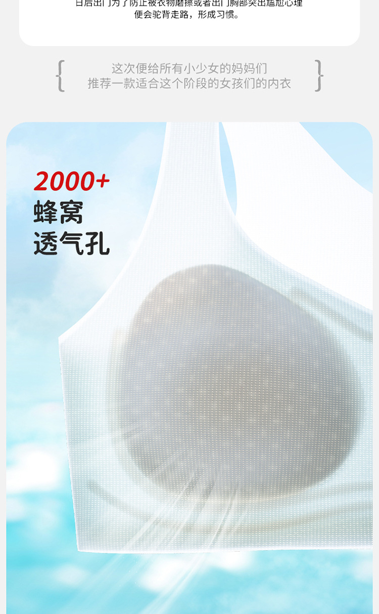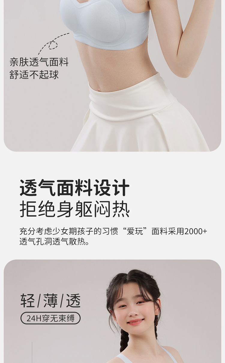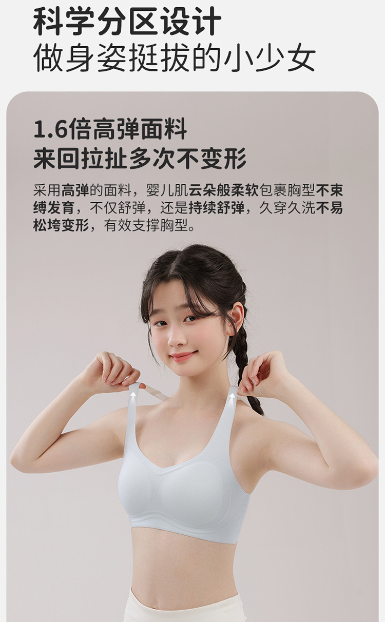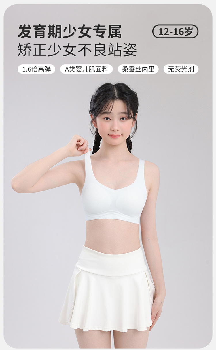 6907 심리스 여아 속옷, 여성용 노와이어, 가슴축소, 처짐방지, 스포츠발달기 브라, 여름얇은스타일