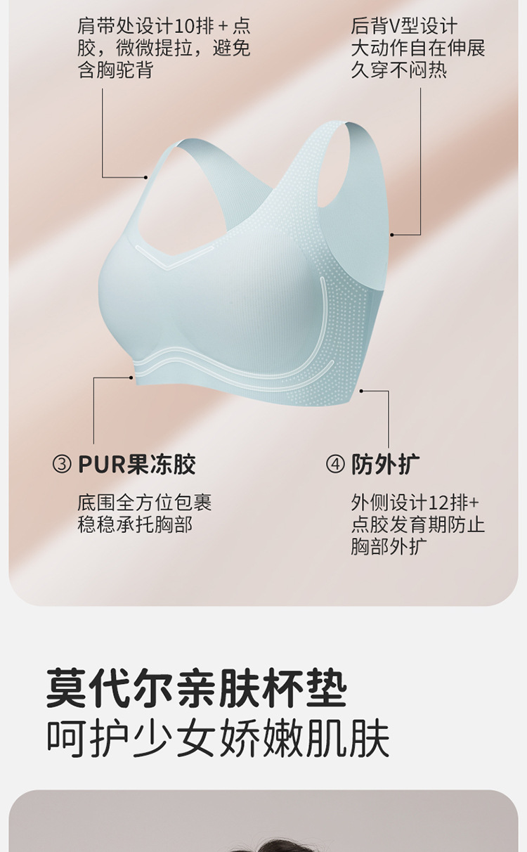 6907 심리스 여아 속옷, 여성용 노와이어, 가슴축소, 처짐방지, 스포츠발달기 브라, 여름얇은스타일스토어 가기