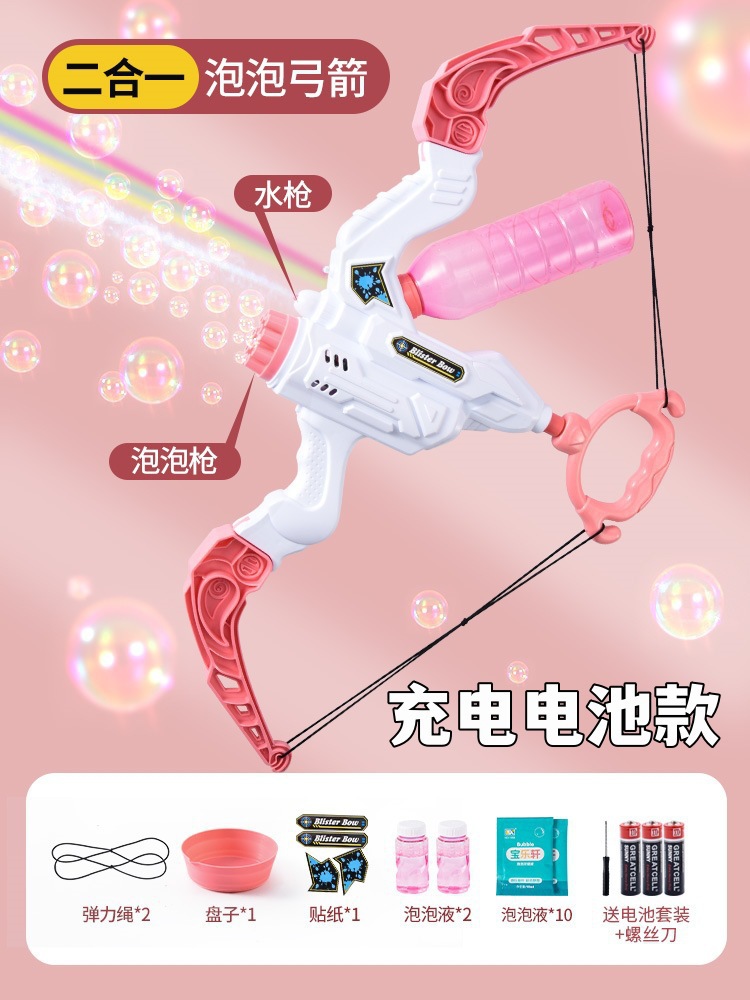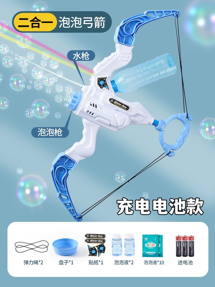 새로운 활과 화살 버블 머신 2-in-1 물총 버블 머신 Galin 기관총 어린이 장난감 생일 선물스토어 가기