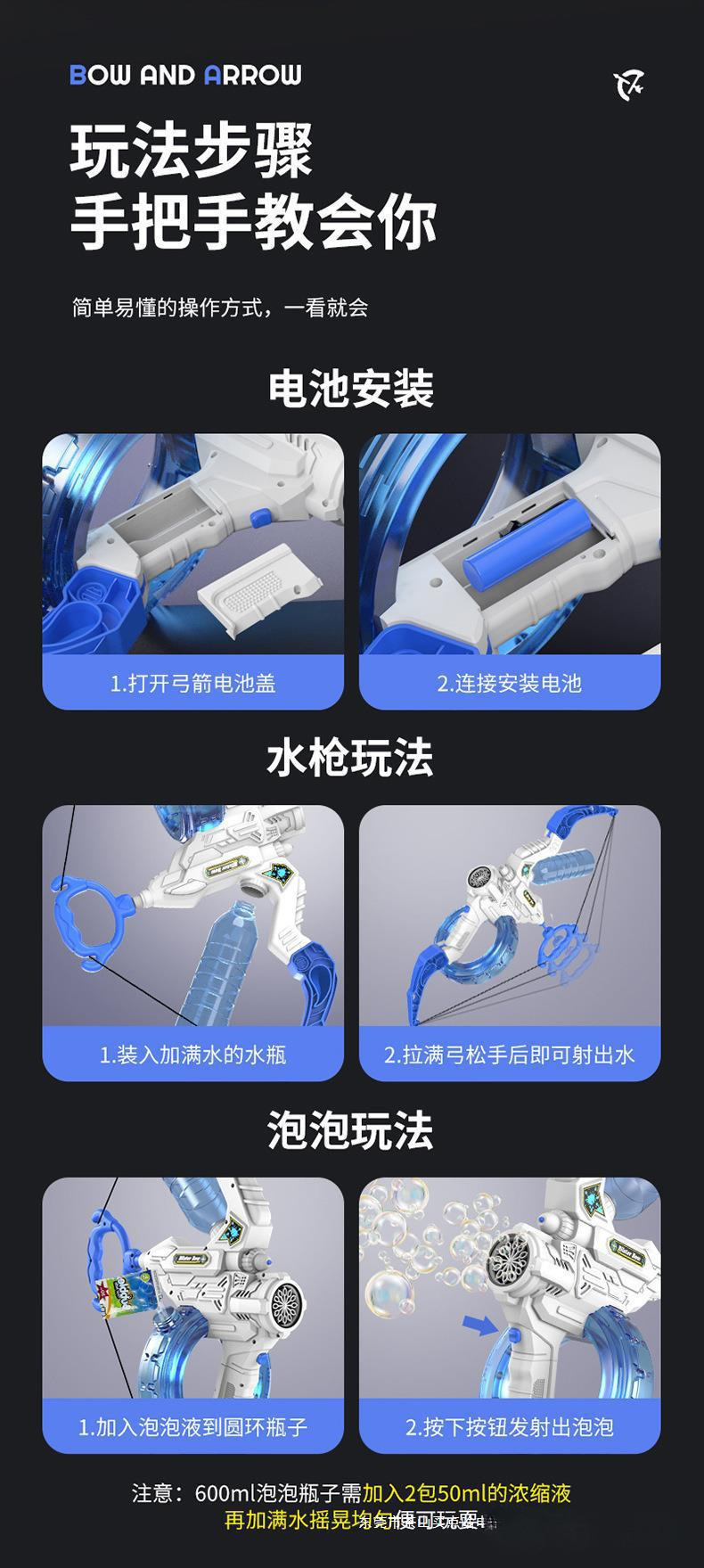 새로운 활과 화살 버블 머신 2-in-1 물총 버블 머신 Galin 기관총 어린이 장난감 생일 선물