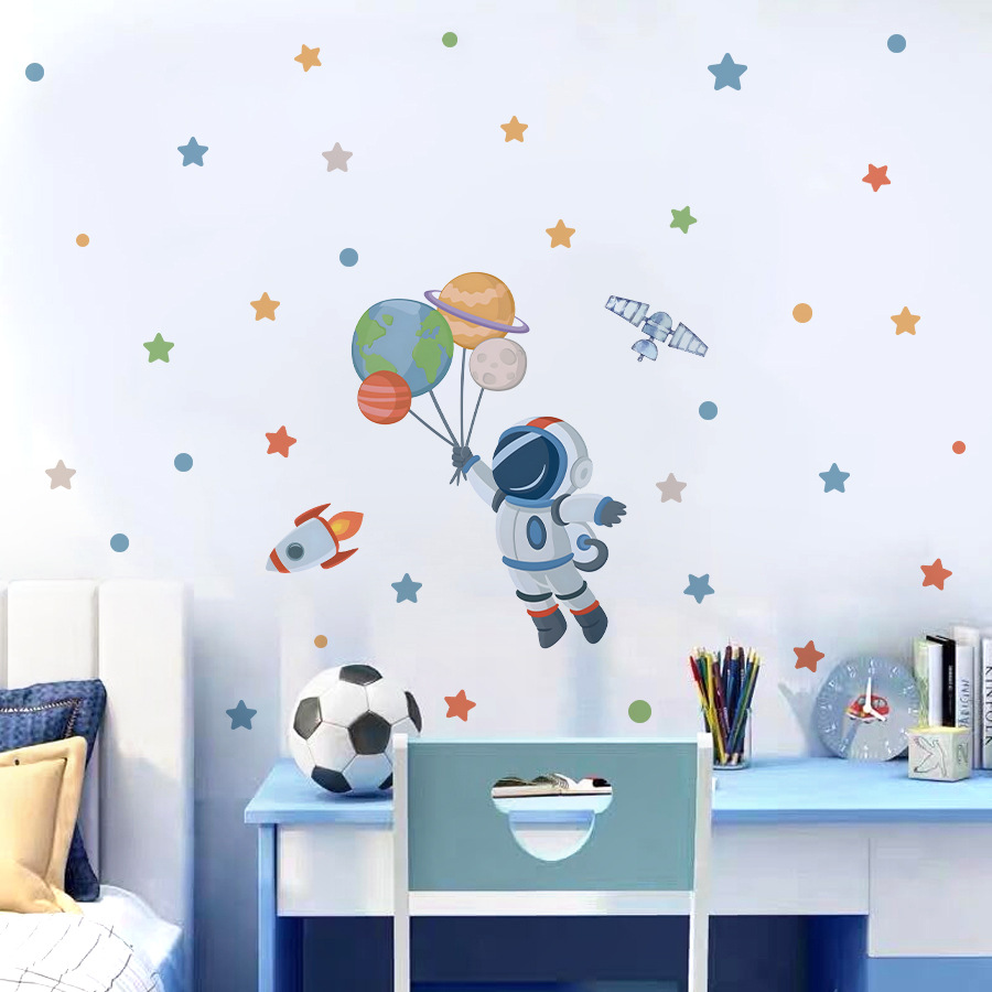 BR-YG105C 우주 비행사 위성 항공기 만화 자체 접착 벽 스티커 침실 어린이 방 장식 스티커스토어 가기