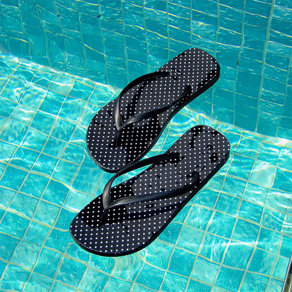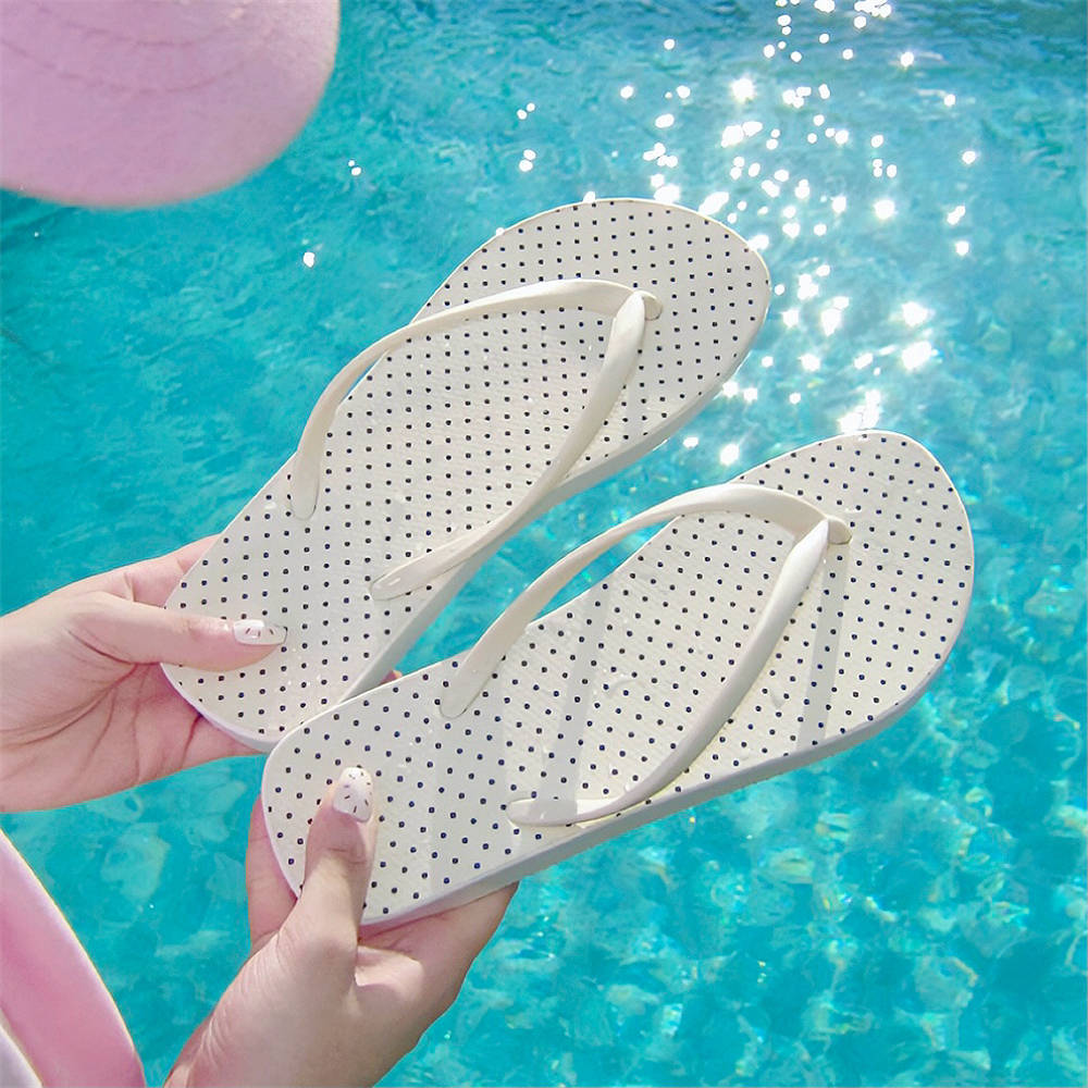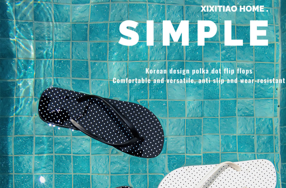 여름 여학생들이 해변에서 캐주얼하게 휴가를 즐길 수 있는 귀여운 물방울 무늬 슬리퍼입니다.스토어 가기