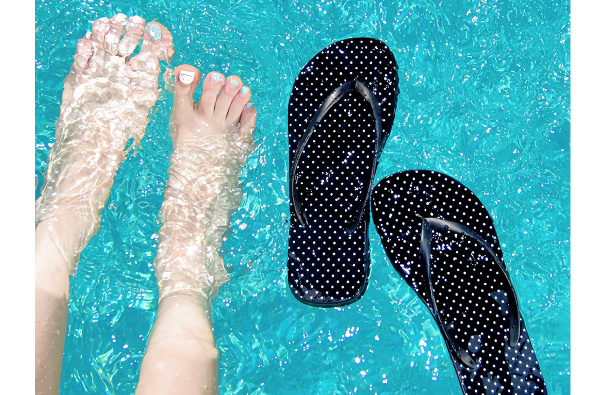 여름 여학생들이 해변에서 캐주얼하게 휴가를 즐길 수 있는 귀여운 물방울 무늬 슬리퍼입니다.