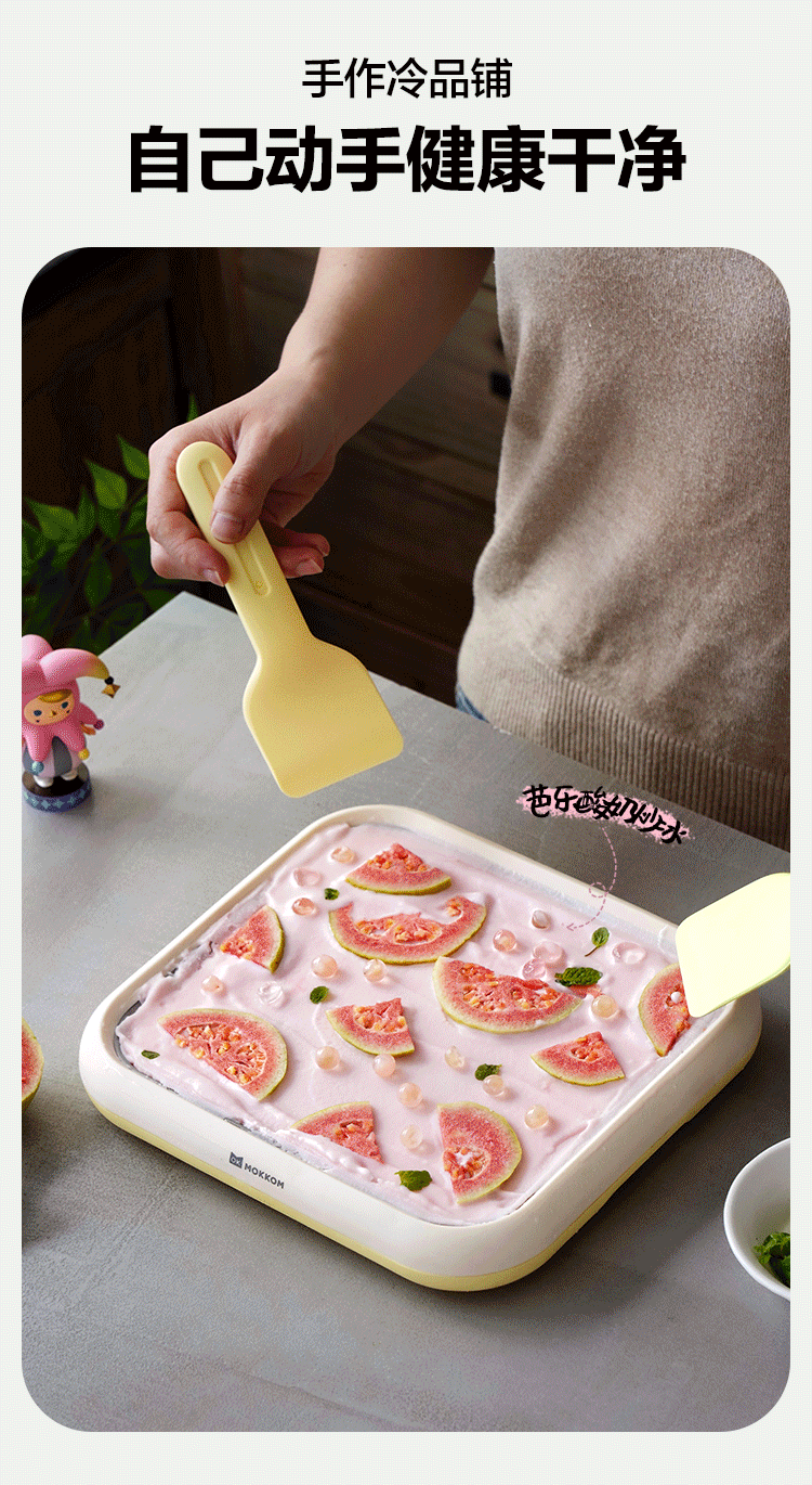 MOKKOM 프라이드 아이스 기계 프라이드 요구르트 기계 가정용 소형 아이스크림 기계 DIY 프라이드 아이스 트레이 플러그 아웃