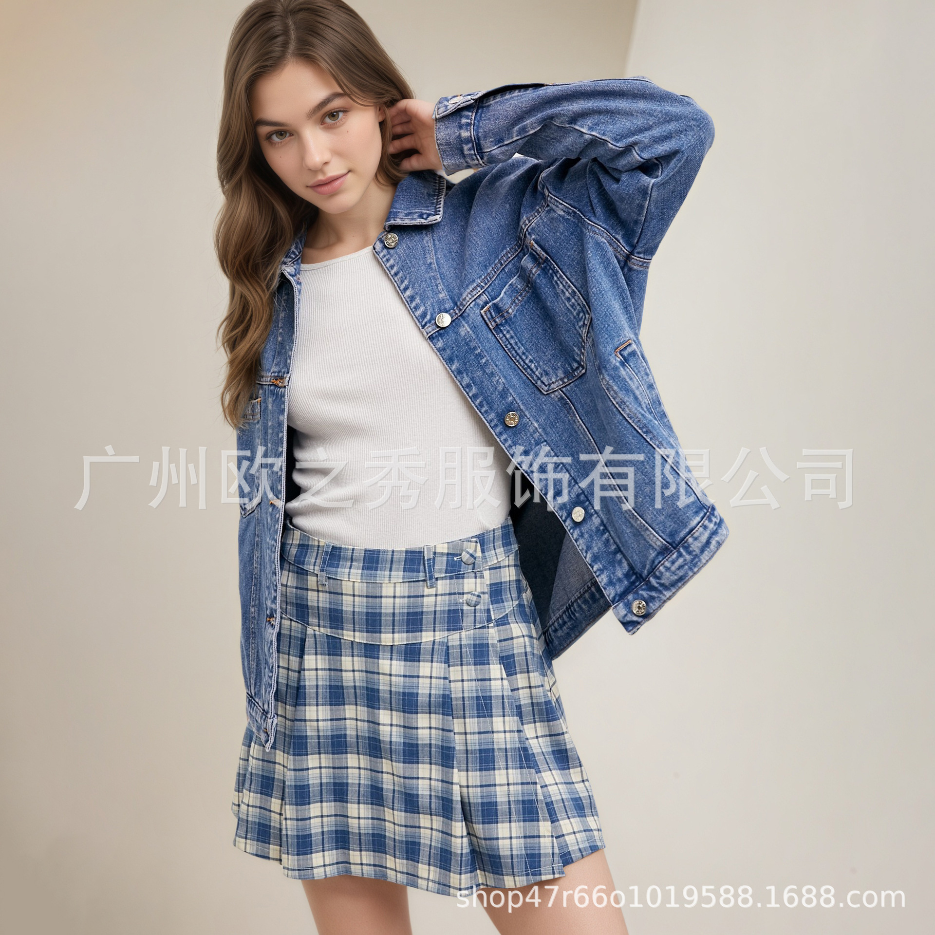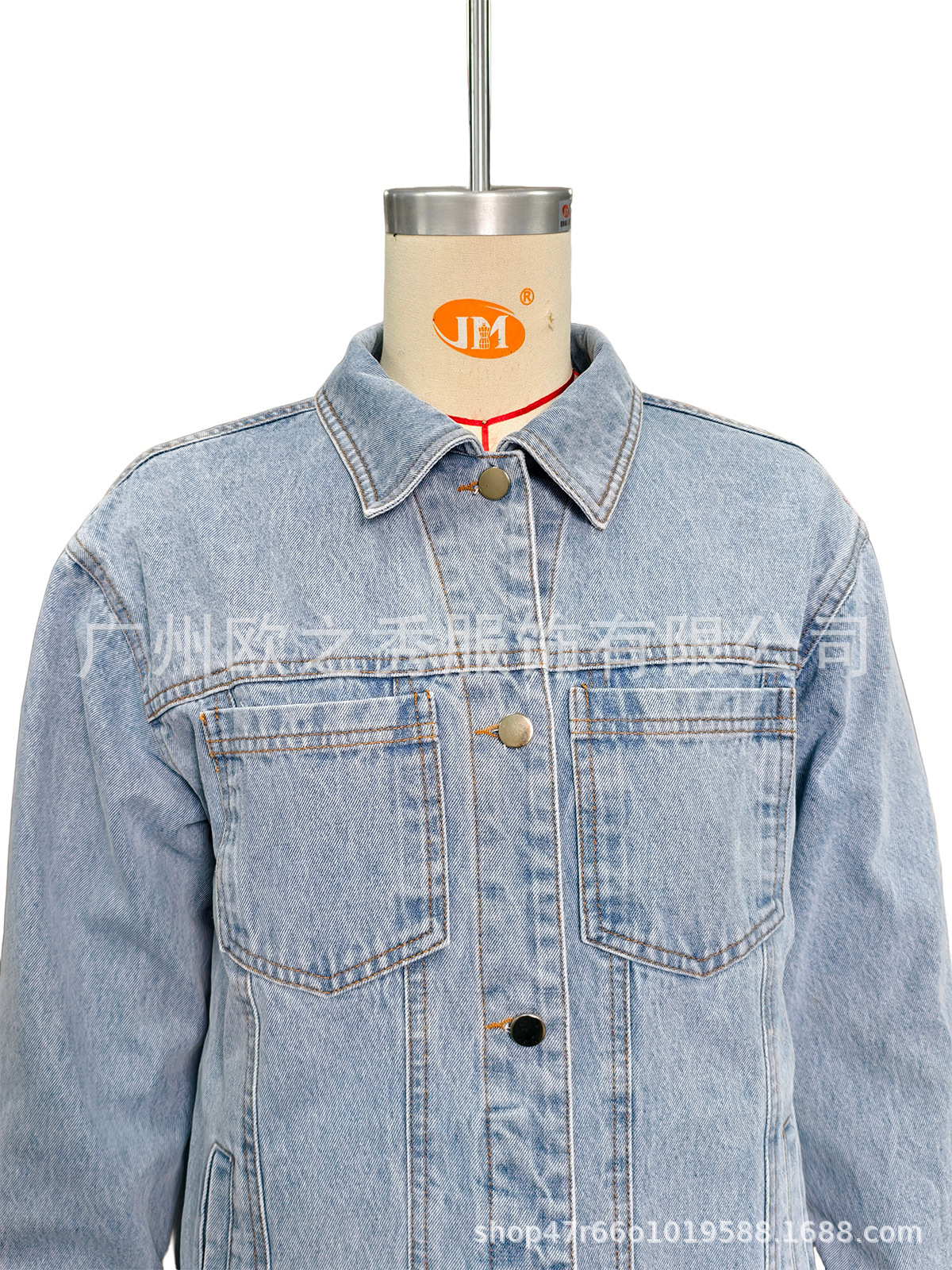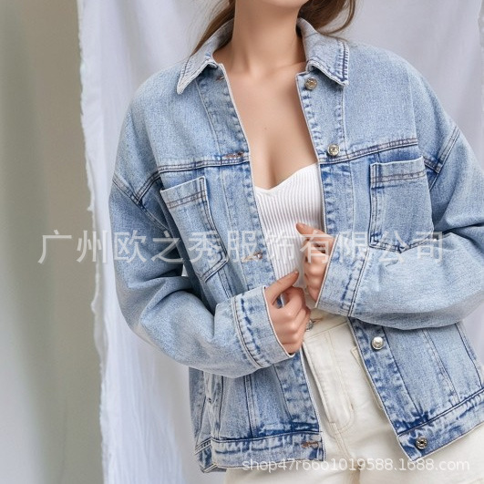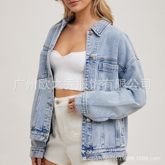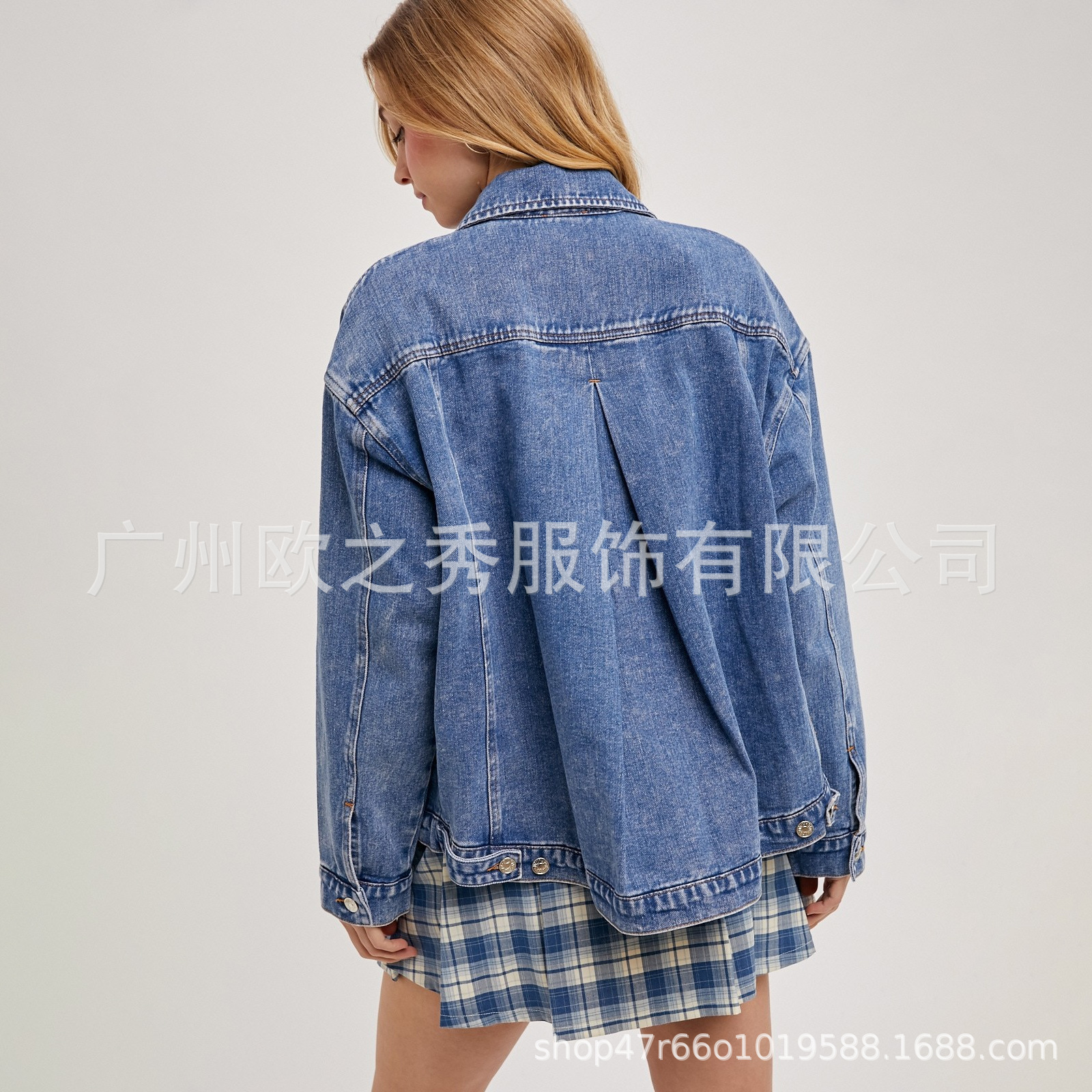 2025 새로운 유럽과 미국의 여성용 데님 재킷 단색 느슨한 긴팔 워시 라펠 데님 재킷 여성용스토어 가기