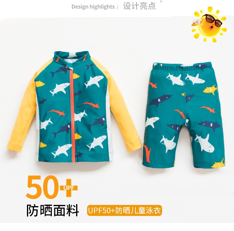 소년 수영복 스플릿 긴팔 어린이 상어 소년 속건성 수영복 정장 여름 신작 어린이 자외선 차단 수영복