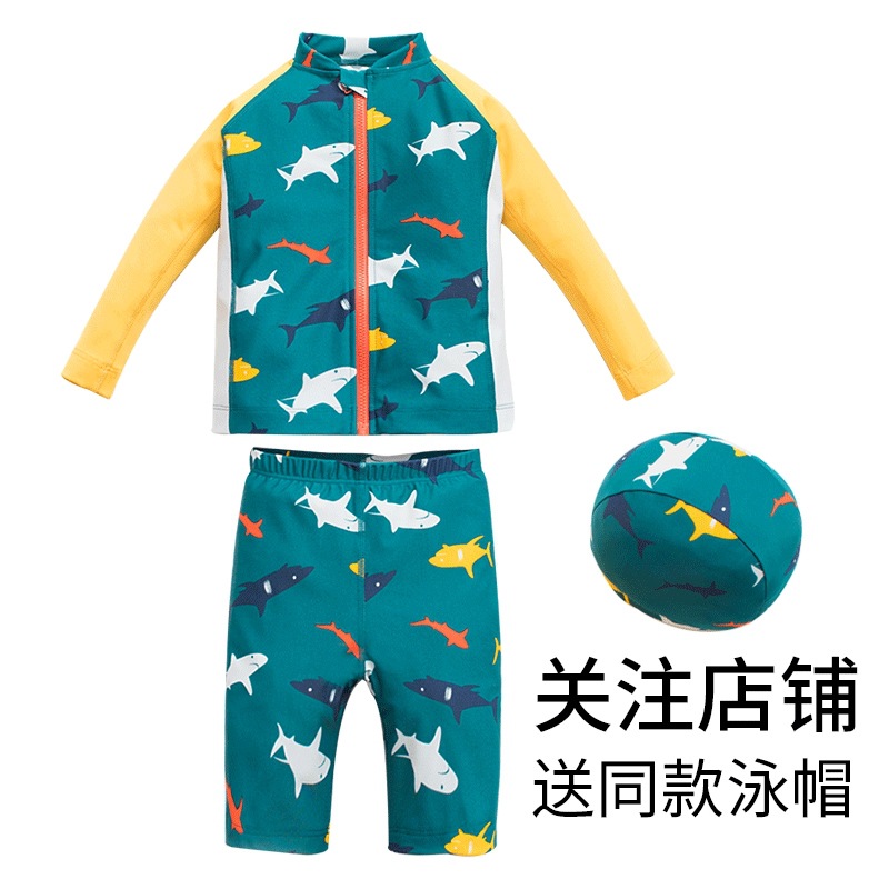 소년 수영복 스플릿 긴팔 어린이 상어 소년 속건성 수영복 정장 여름 신작 어린이 자외선 차단 수영복스토어 가기