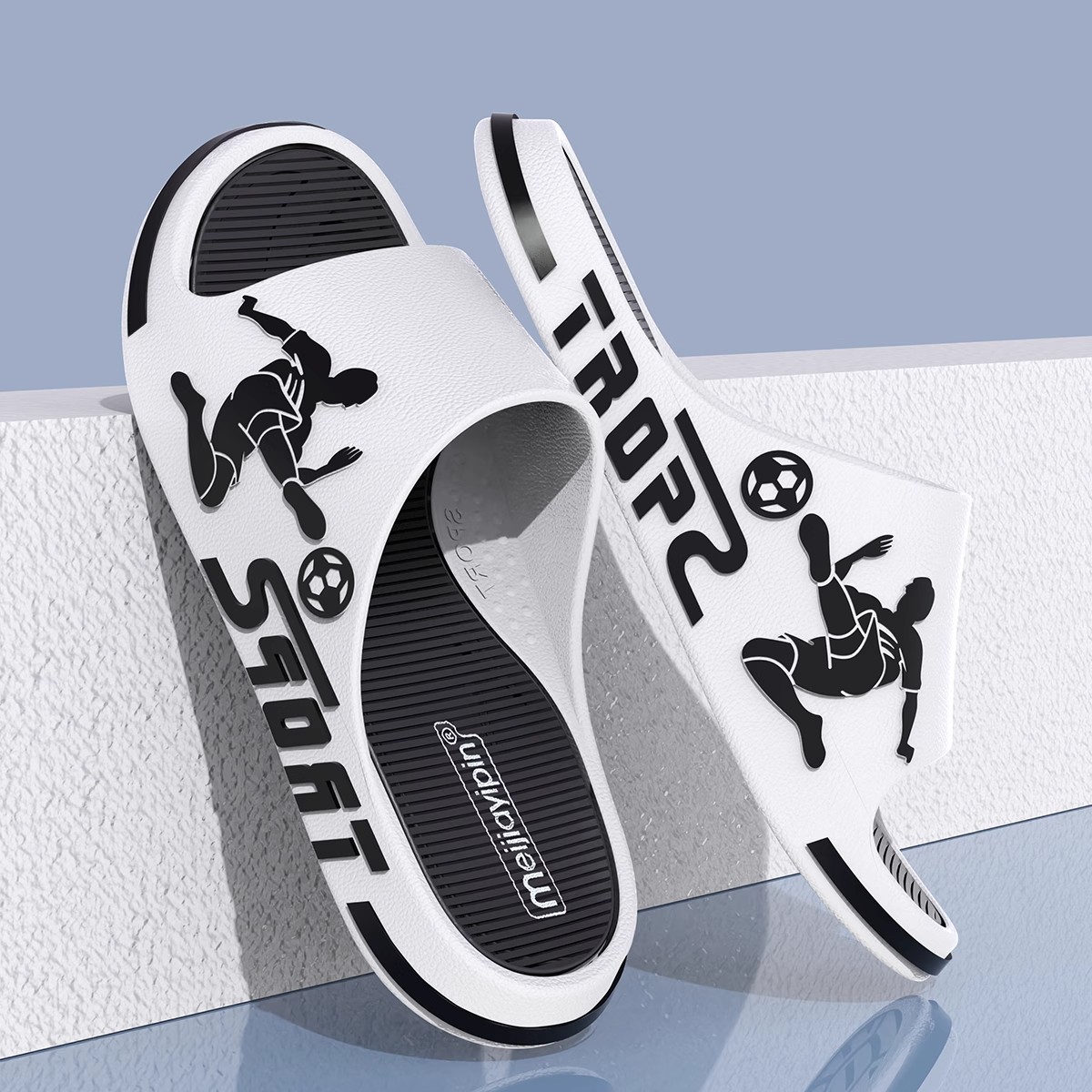 • 흰색과 검정색 축구 슬리퍼