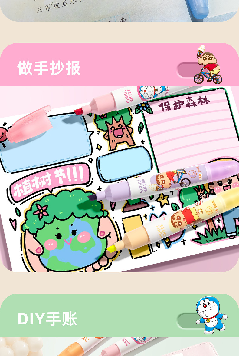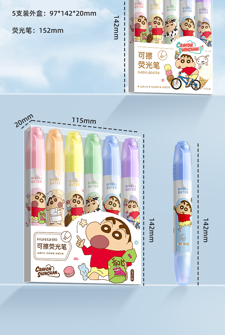 정품 도라에몽 크레용신짱 양방향 지울 수 있는 형광펜 키펜 핸드북 펜 컬러 마커스토어 가기