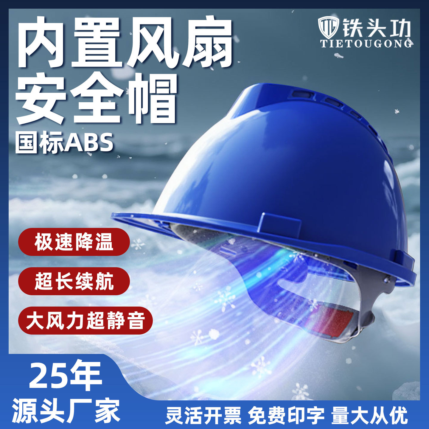 건설 현장 국가 표준 ABS 여름 경량 환기 및 냉각 견고한 파손 방지 충전식 리튬 전기 터빈 이중 팬 안전 헬멧