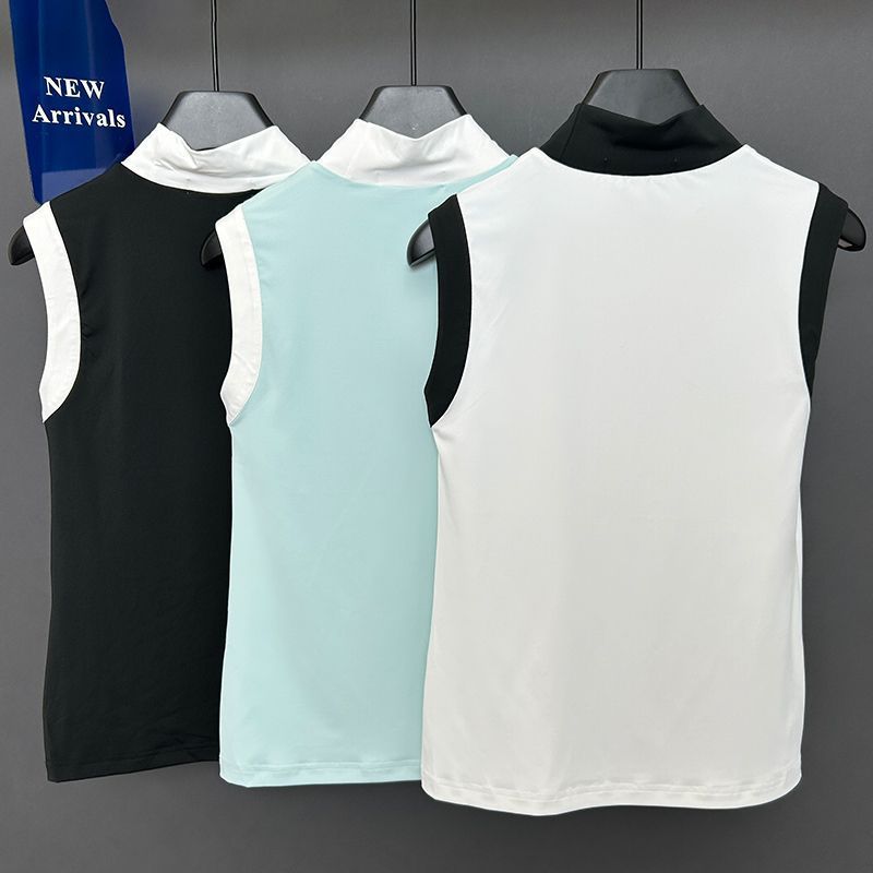새로운 여름 골프 여성 의류 라운드 넥 민소매 티셔츠 컬러 매칭 패션 고품질 빠른 건조 탄성 스포츠 저지스토어 가기