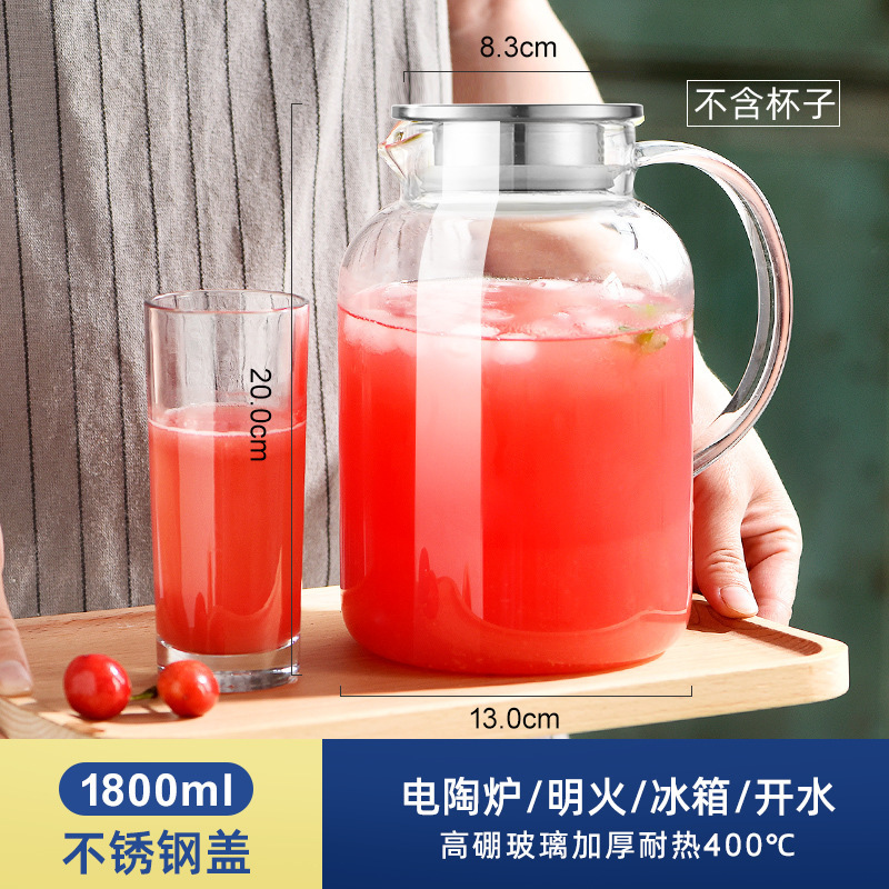 냉수병, 유리 냉수병, 대용량 차 주전자, 가정용 고온 방지 백열수 컵, 여름 주전자스토어 가기