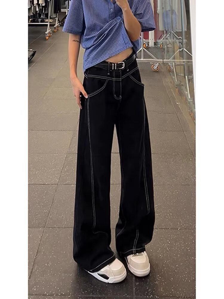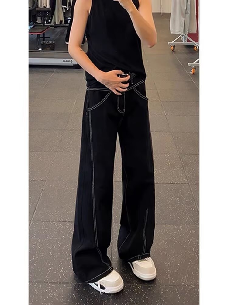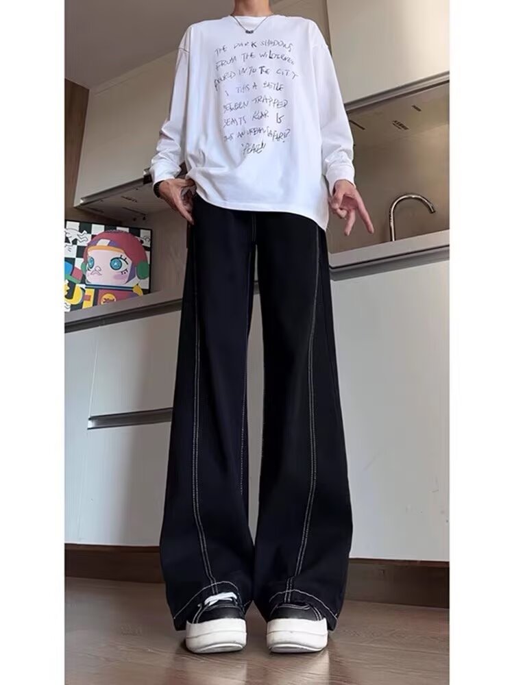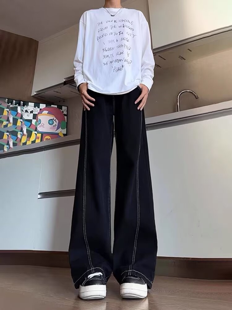 클린핏 블랙 마체테 부츠컷 청바지 남성 봄, 가을 바이브 아메리칸 슬림 스트레이트 캐주얼 롱 팬츠