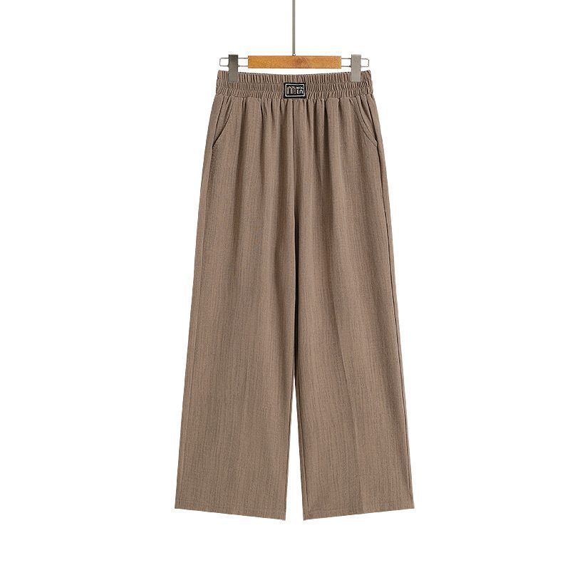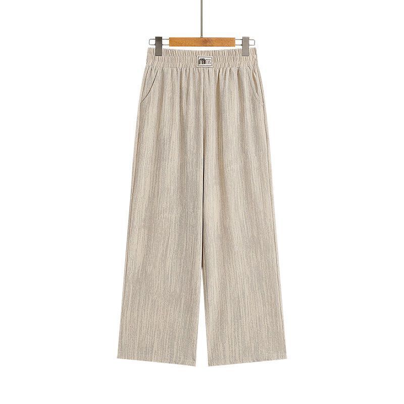여성을위한 얇은 좁은 와이드 팬츠 여름 2025 새로운 엄마 바지 하이 웨이스트 느슨한 통기성 틈새 슬리밍 캐주얼스토어 가기