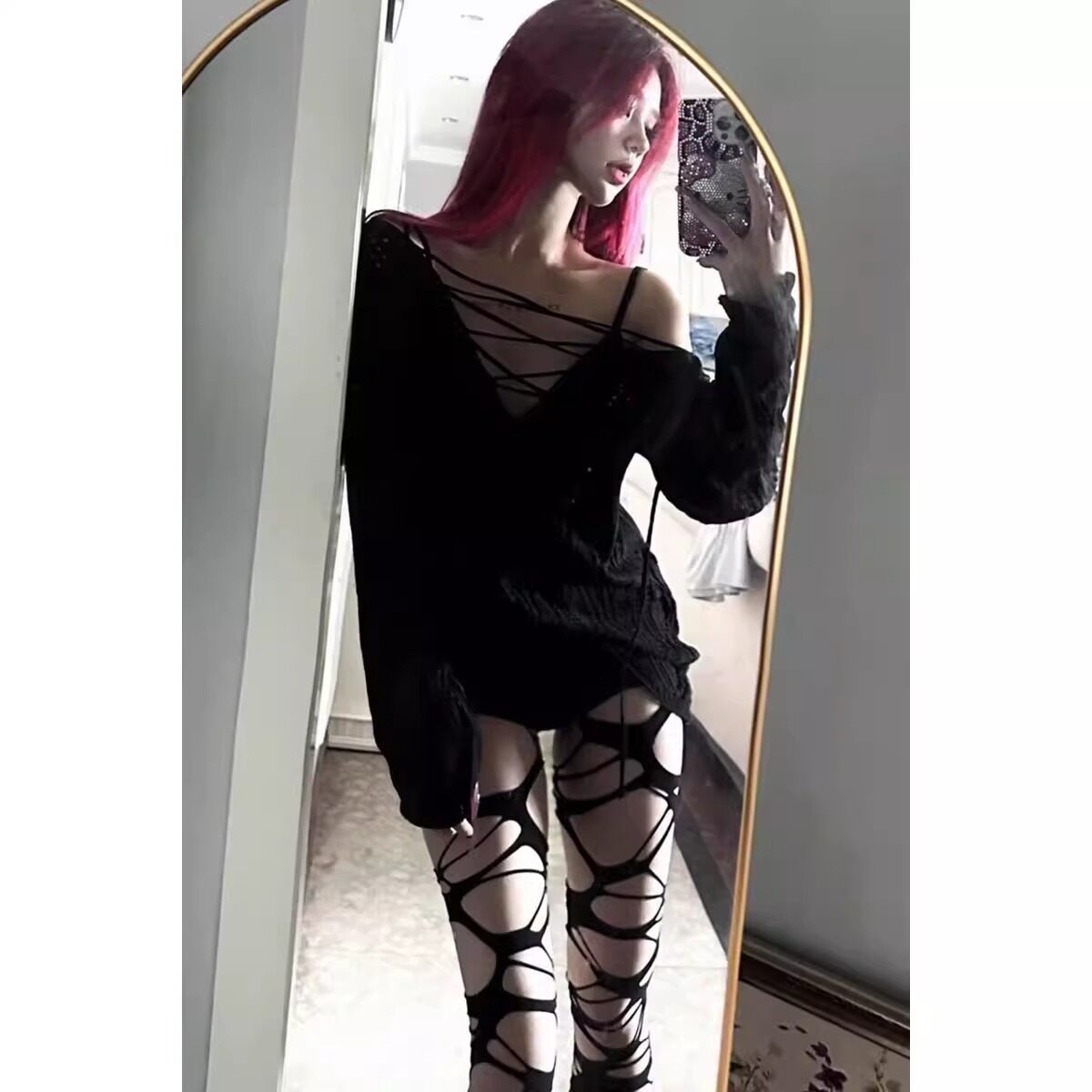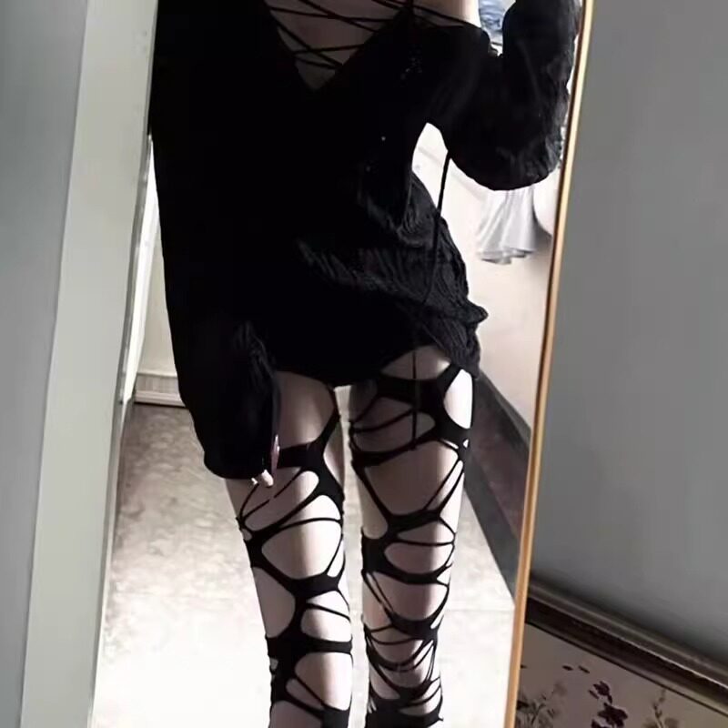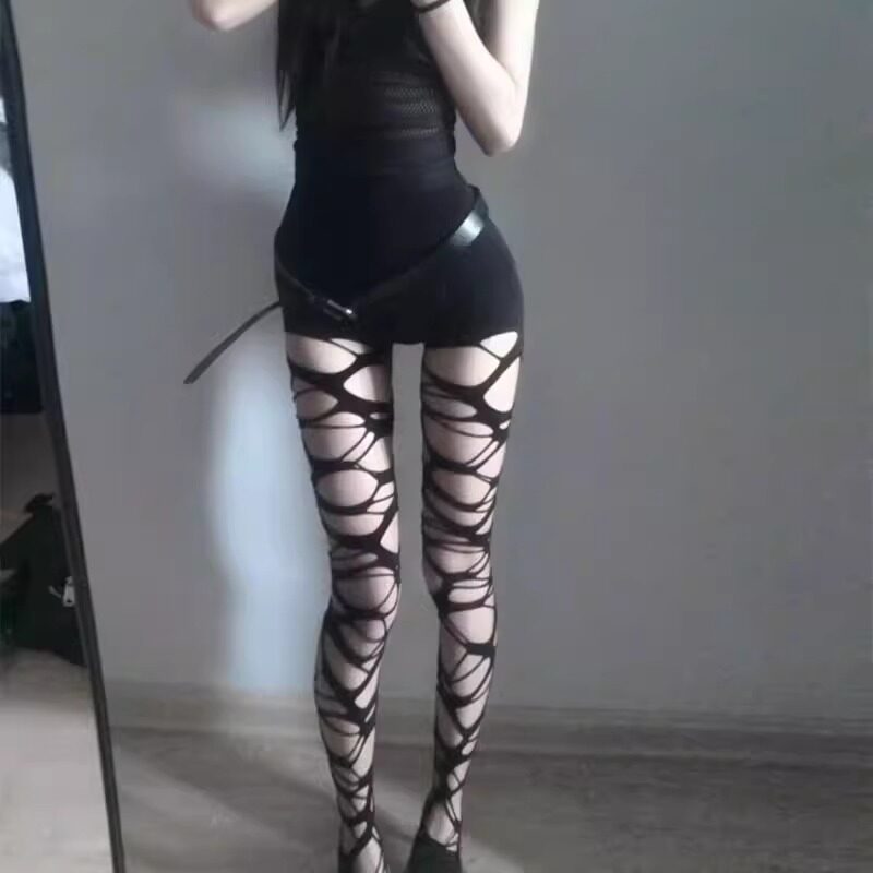 찢어진 무릎 위 스타킹, 롱 스타킹, 짧은 서브컬쳐, 핫걸 jk 팬티스타킹, 여성용 불규칙 메쉬 스타킹스토어 가기