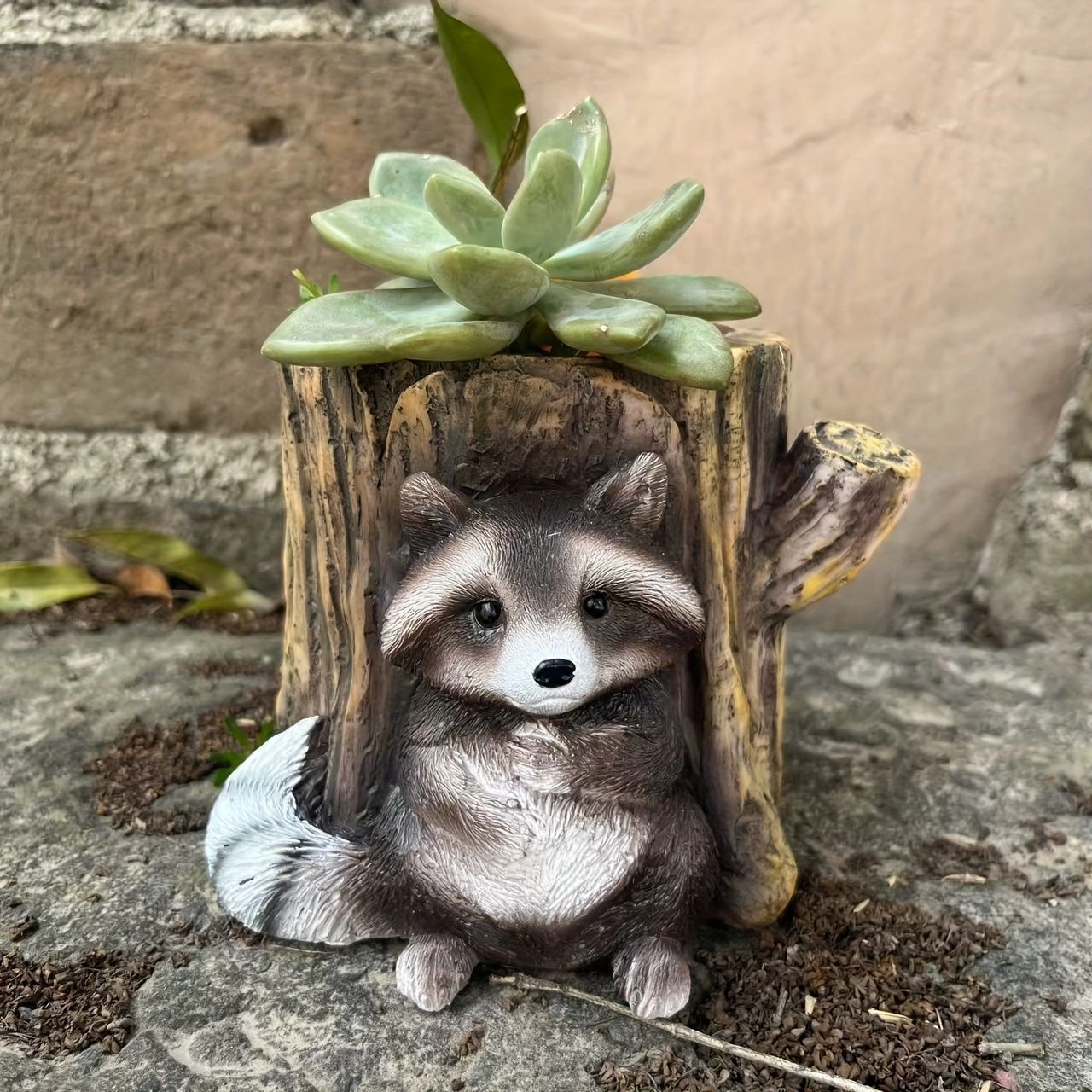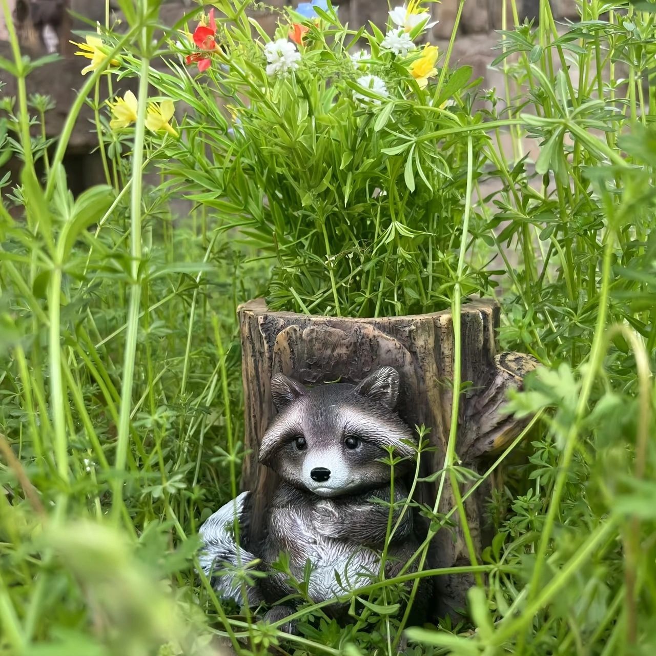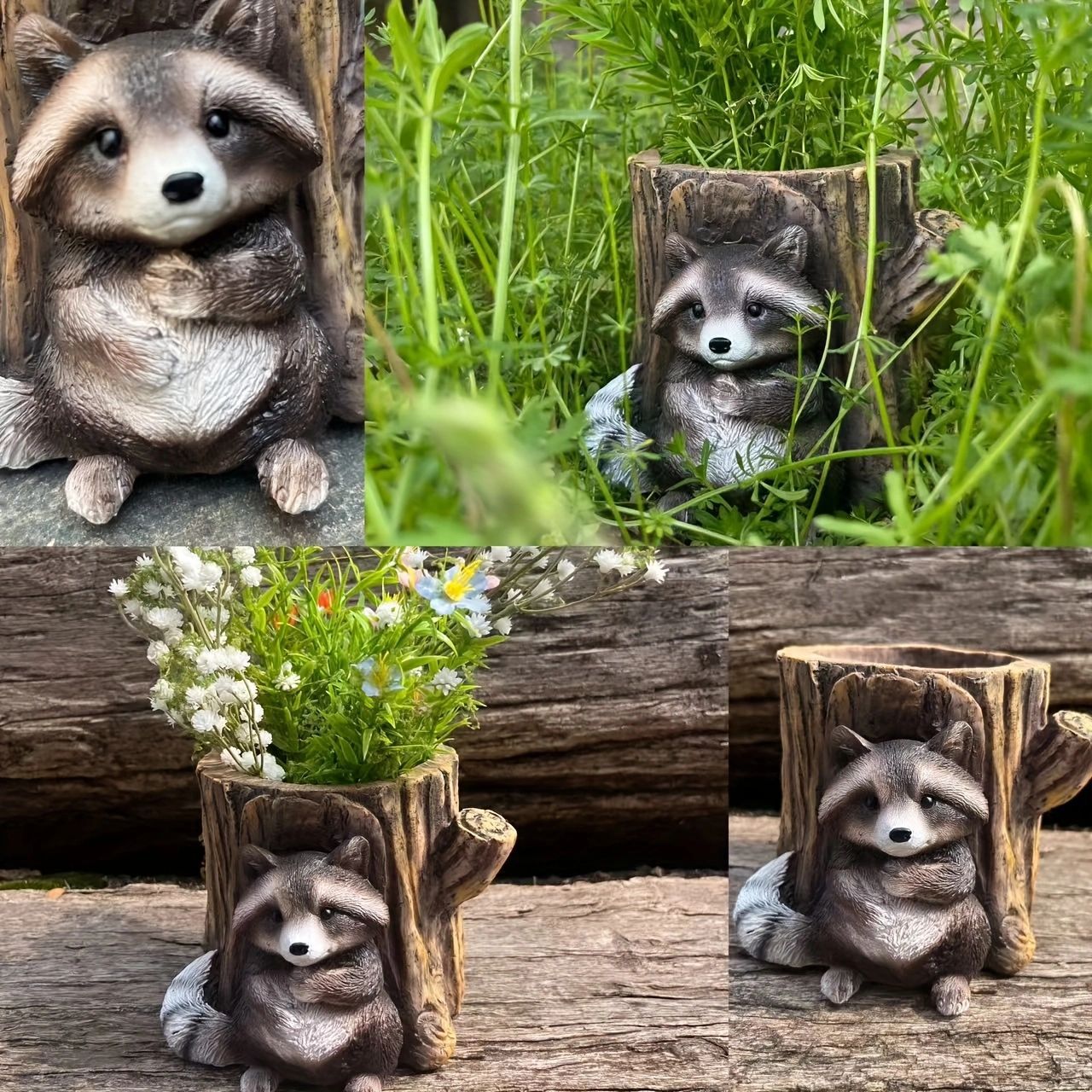 국경 간 인기 판매 야외 시뮬레이션 동물 조각 너구리 화분 장식품 수지 공예 빌라 안뜰 정원 장식