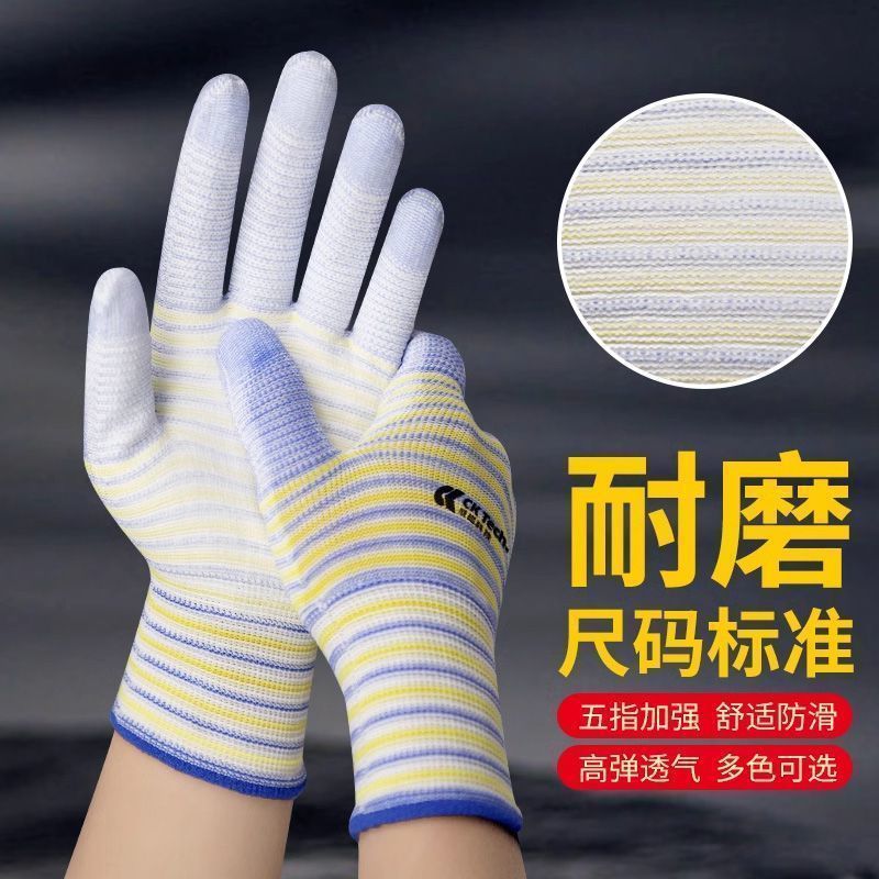 PU 코팅 손바닥 장갑 13바늘 흰색 나일론 폴리에스터 장갑 코어 노동 보호 장갑 PU 코팅 손가락 장갑스토어 가기